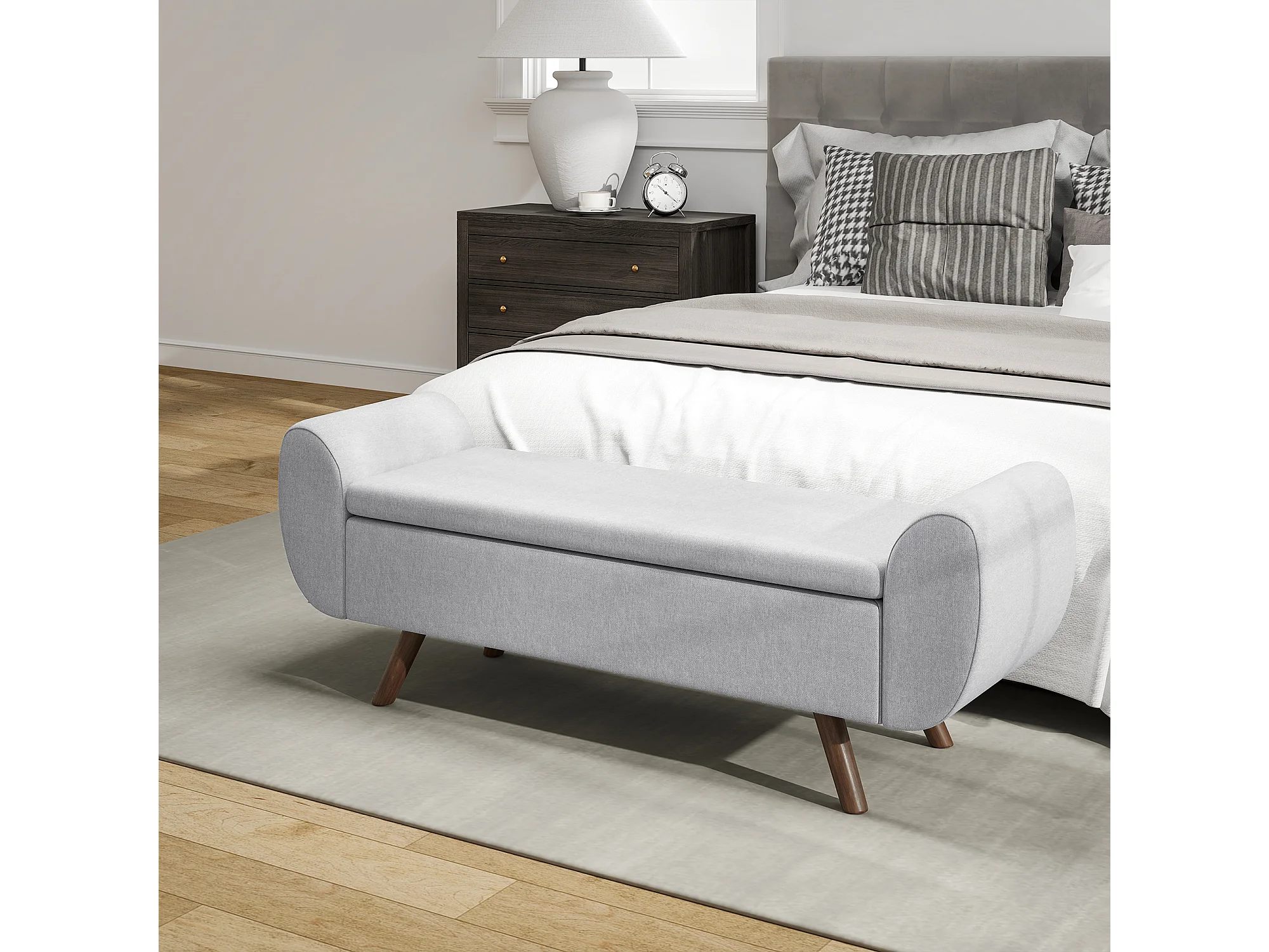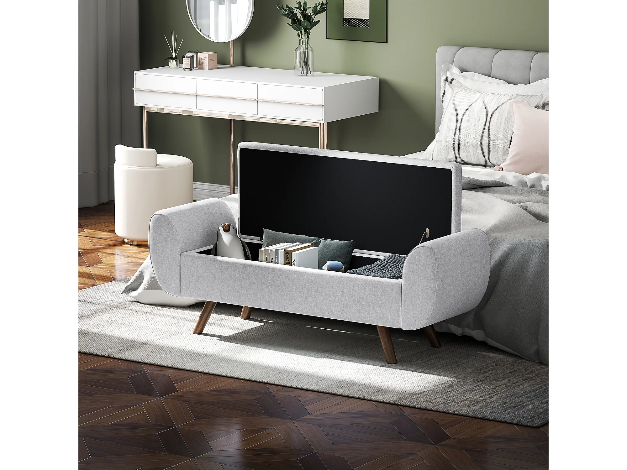 Banc coffre design - banquette avec rangement - dim. 132 x 42 x 50 cm - piètement bois tissu gris clair