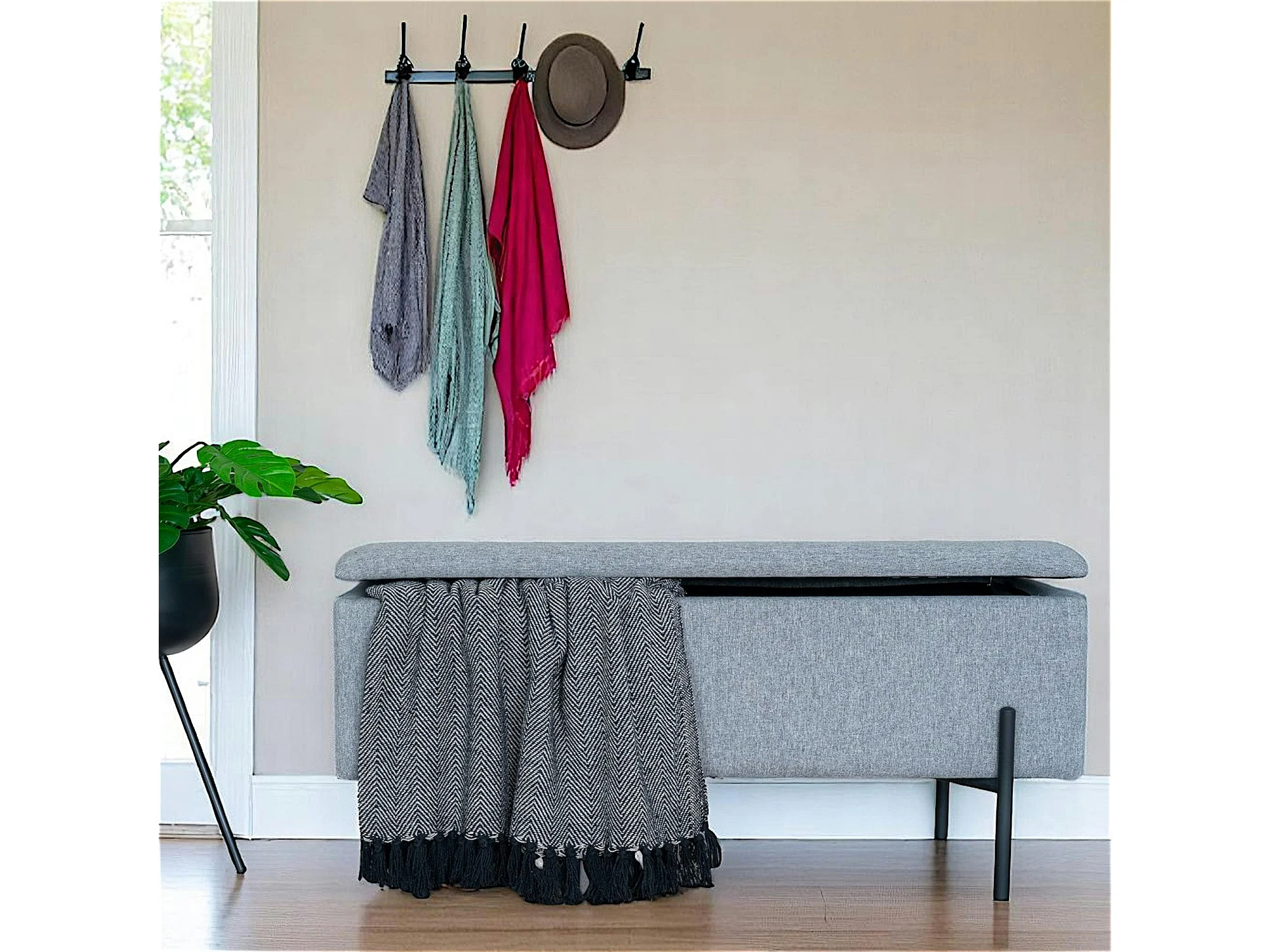 Banc coffre gris clair avec pieds en métal noir BRUGES