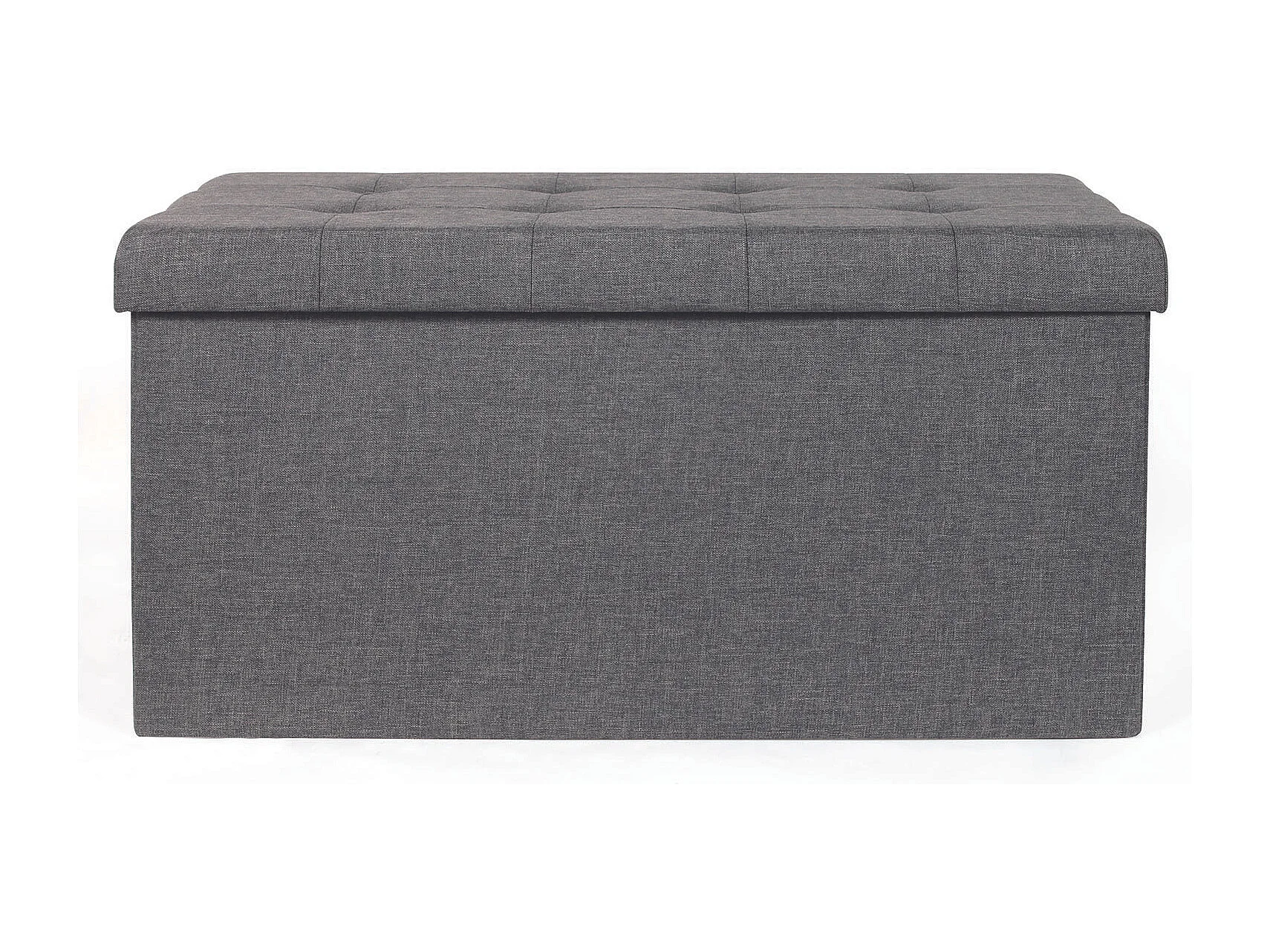 Tabouret bas coffre de rangement en tissu bouclette et métal doré - Gris - ESDALO