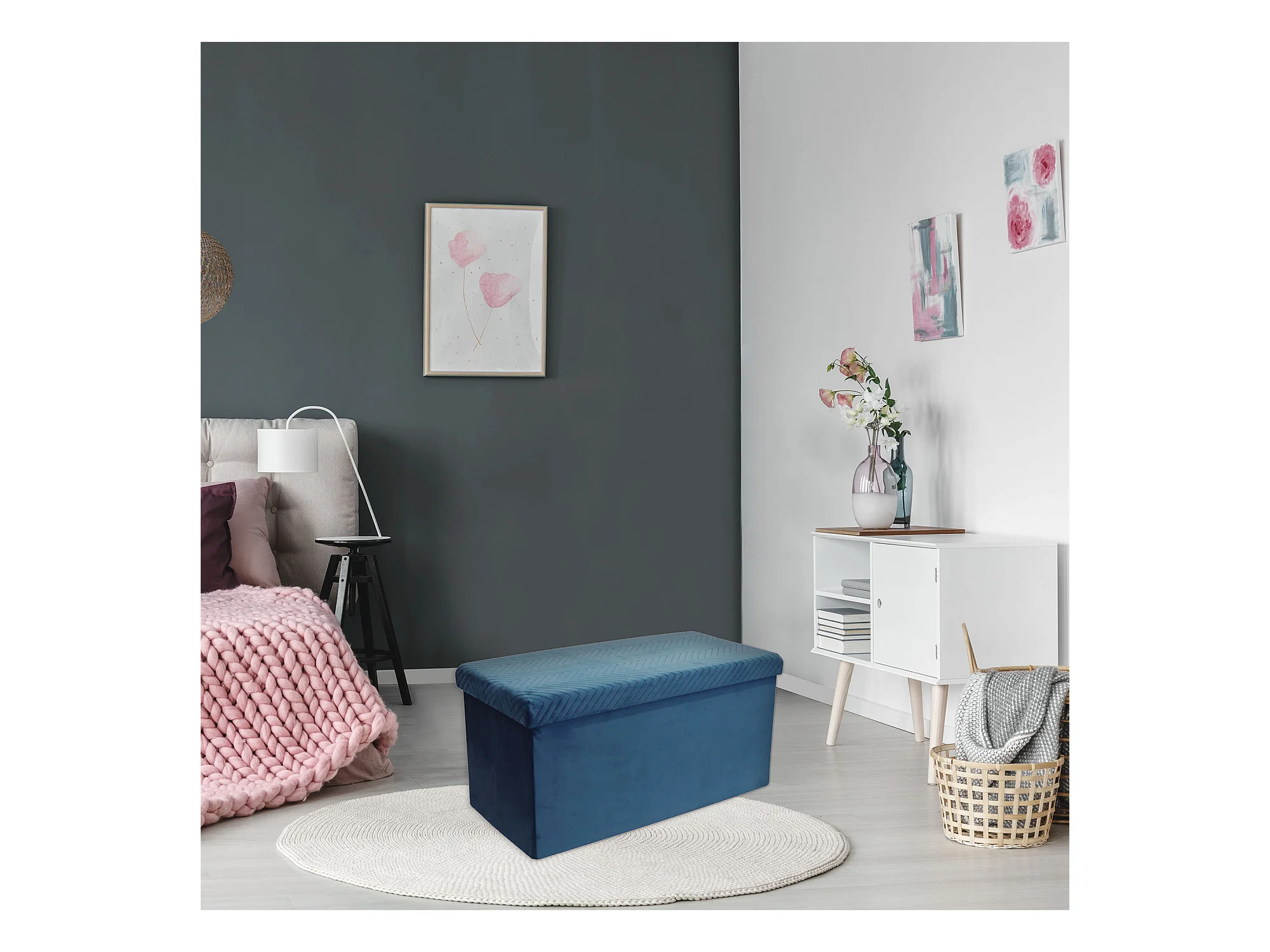 Coffre Banc Pliable Velours A Motif Bleu Bleu