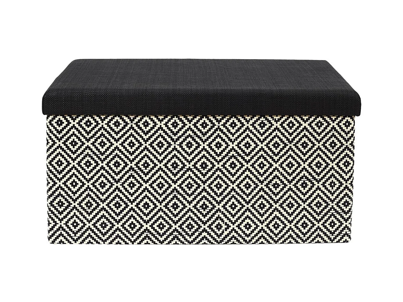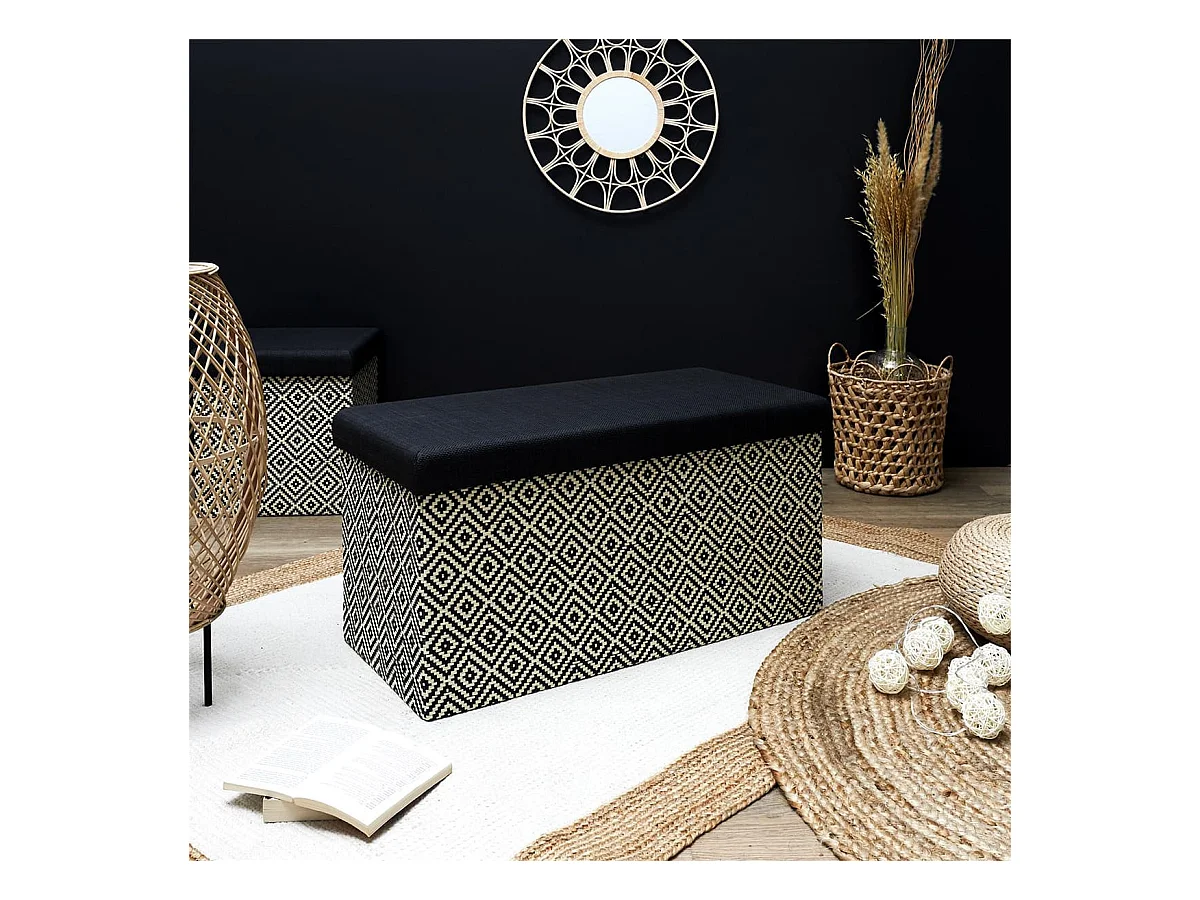 Banc Coffre Pliable Tressé Motif Géométrique Noir et Blanc - IMPERO