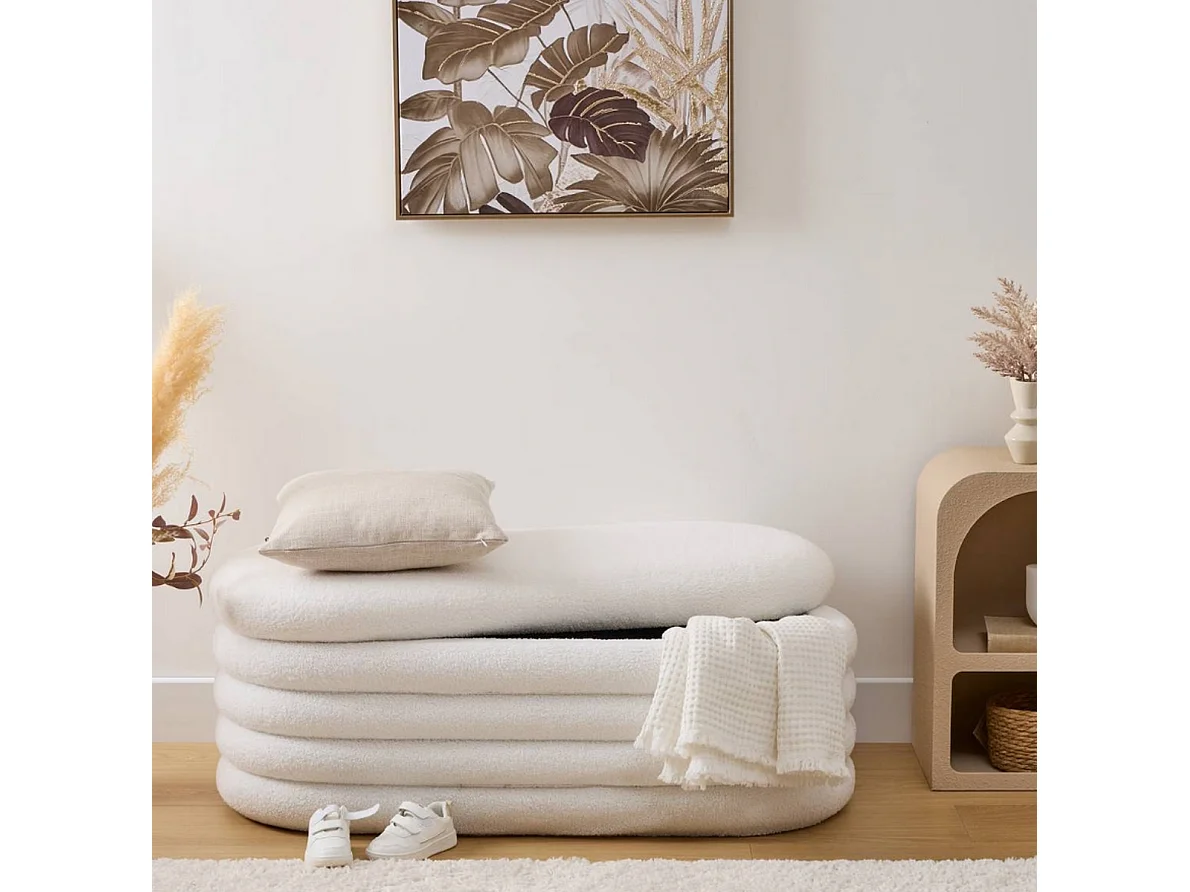 Banc coffre rembourré en bouclette coloris Blanc - Longueur 110 x Profondeur 46 x Hauteur 40,5 cm