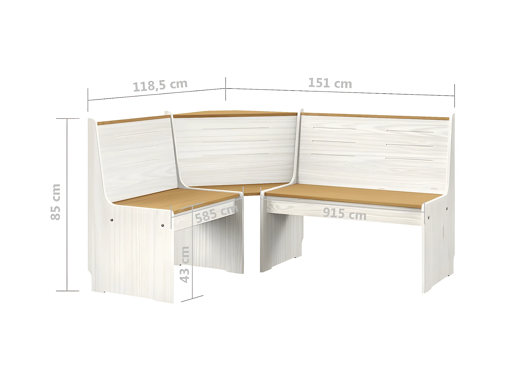 Banc d'angle de jardin 151cm Pin solide Marron miel et blanc