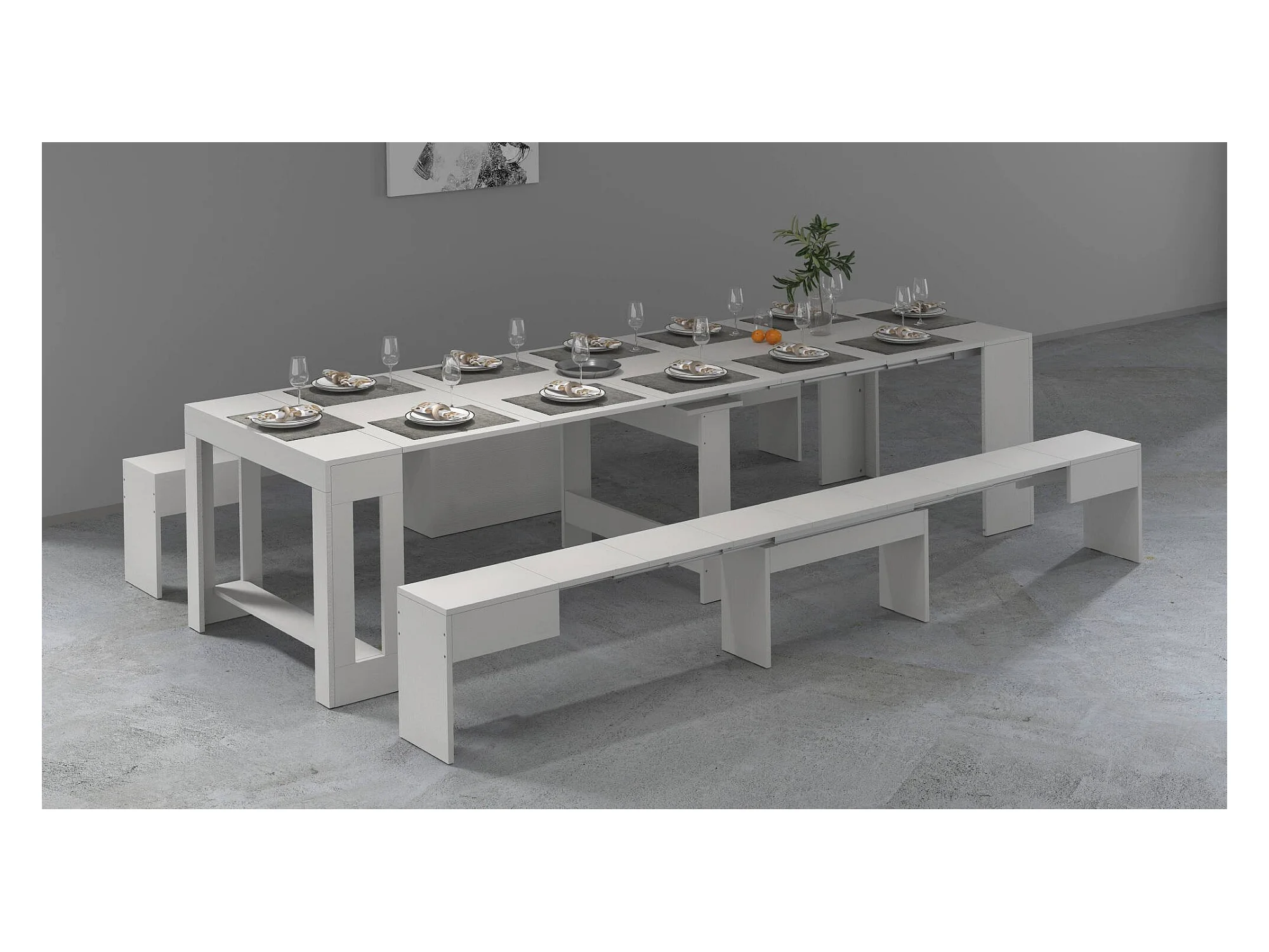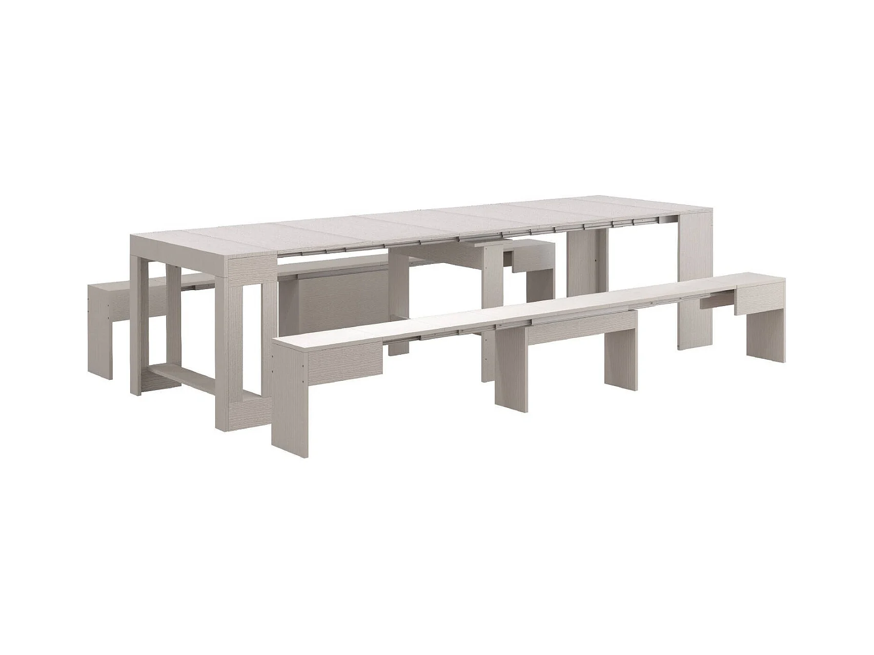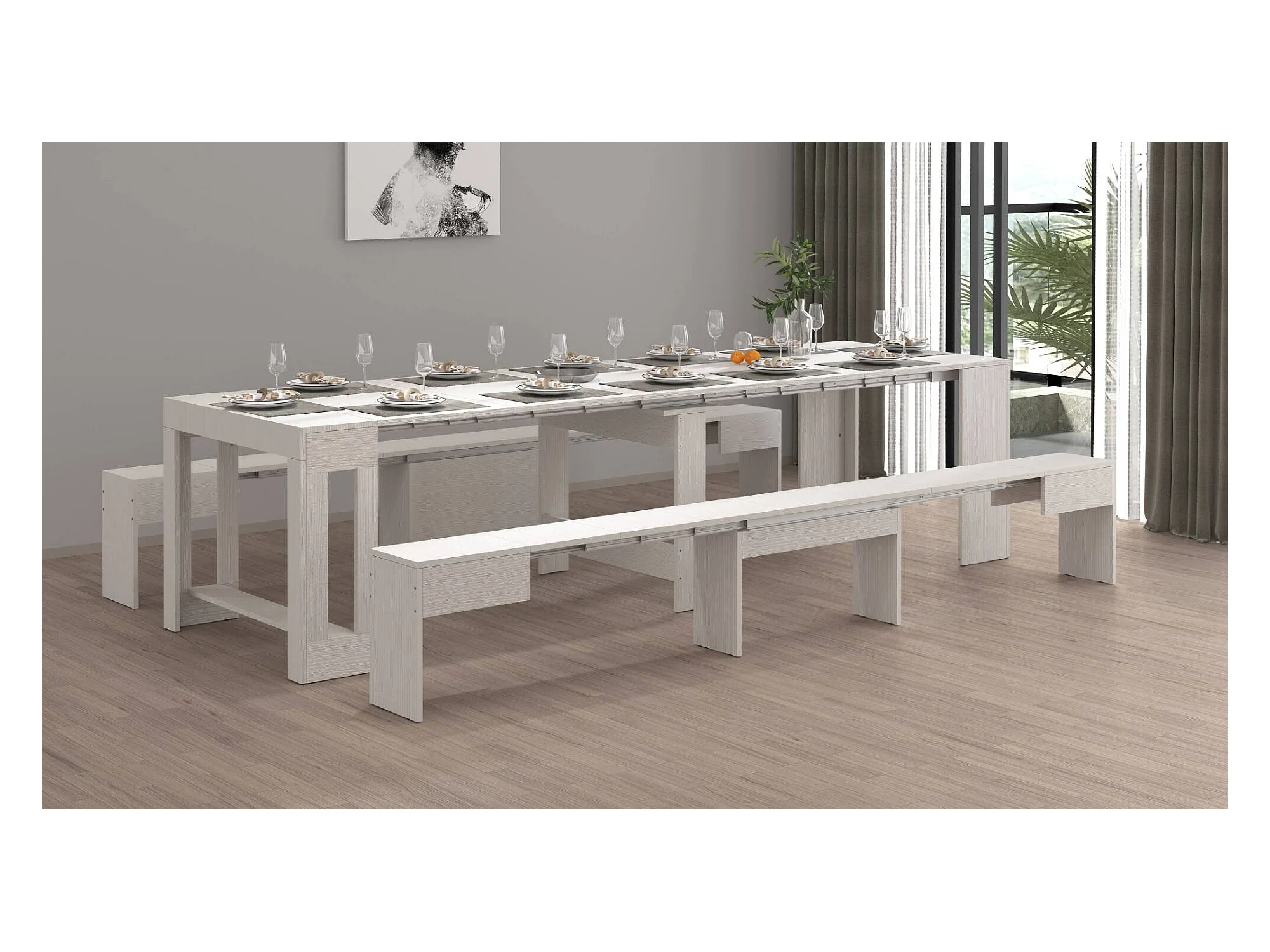 Banc Dcolasuon, Lot de 2 Sièges pour table à manger, Bancs extensibles, 290x25h45 cm, Blanc