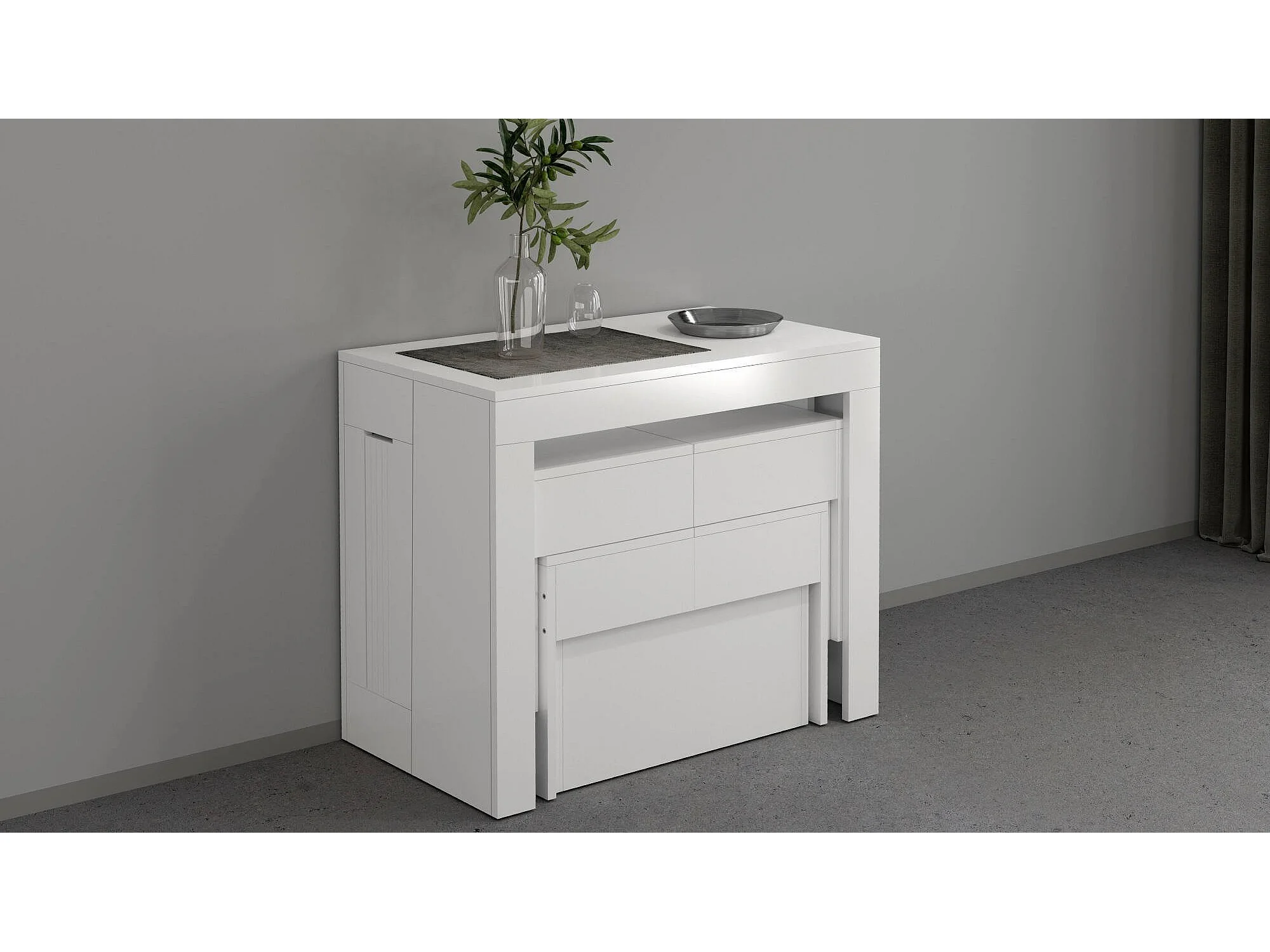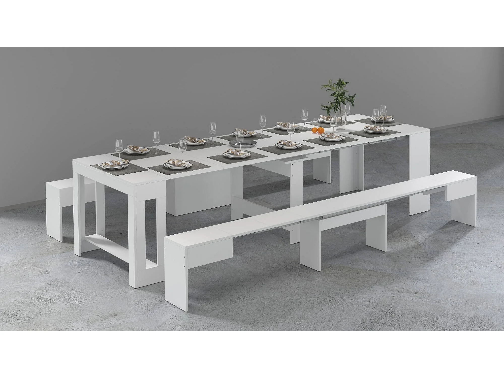 Banc Dcolasuon, Lot de 2 Sièges pour table à manger, Bancs extensibles, 290x25h45 cm, Blanc brillant