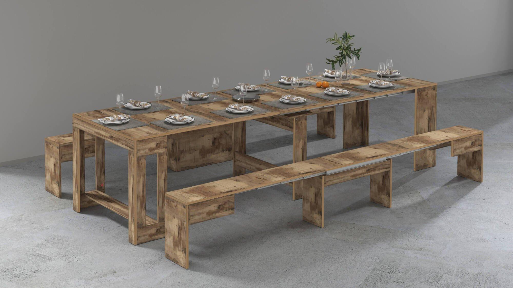 BANC - Ensemble de deux sièges pour table à manger, Bancs extensibles, 290x25h45 cm, Érable. STRUCTURE ET UTILISATION - Ensemble de deux bancs pouvant servir de siège à combiner avec une table à manger - Bancs d'intérieur parfaits pour compléter l'ameublement de votre cuisine ou de votre salon, idéaux pour accueillir vos invités lors de déjeuners ou de dîners entre amis. 100% MADE IN ITALY - La production 100% italienne garantit fiabilité, résistance, confort et durabilité dans le temps - L'attention portée aux processus de production, le choix des matières premières de qualité et le souci du détail rendent ce produit de fabrication noble. CARACTÉRISTIQUES TECHNIQUES - Construit entièrement en panneaux de particules mélaminés, il résiste aux chocs et aux rayures et est durable dans le temps - Nettoyage facile et rapide grâce au matériau qui le compose - Livré démonté avec kit de montage et livret d'instructions - Entretien particulier et attention portée à l'emballage, résistant et adapté au transport - Spécialement créé pour une assise confortable - Objet d'ameublement adapté aux enfants, adolescents et adultes - Certification ISO 9001 pour la conception et la fabrication de meubles en kit - Articles conformes aux normes FSC-STD - 40-004 v3,1. DIMENSIONS EN CM - Banquette ouverte : Longueur : 290 Largeur : 25 Hauteur : 45 - Banquette fermée : 66x25h45 - Banc fermé empilable : 75x25h45