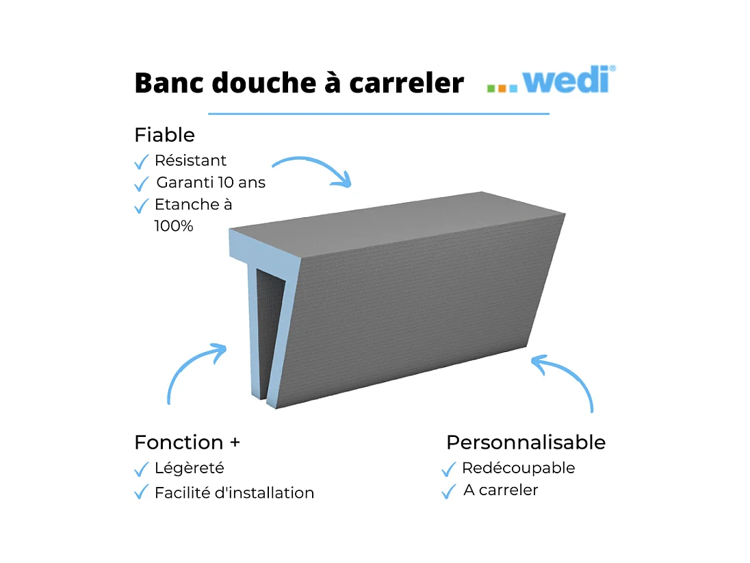 Banc de douche à carreler 90 cm WEDI Sanoasa 2 assise inclinée
