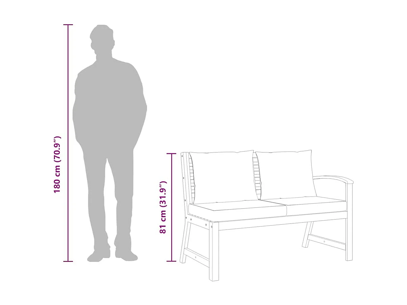 Banc de jardin 114,5 cm avec coussin crème Bois solide d'acacia