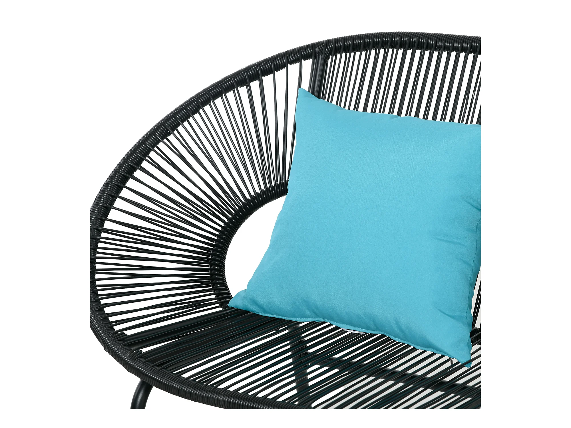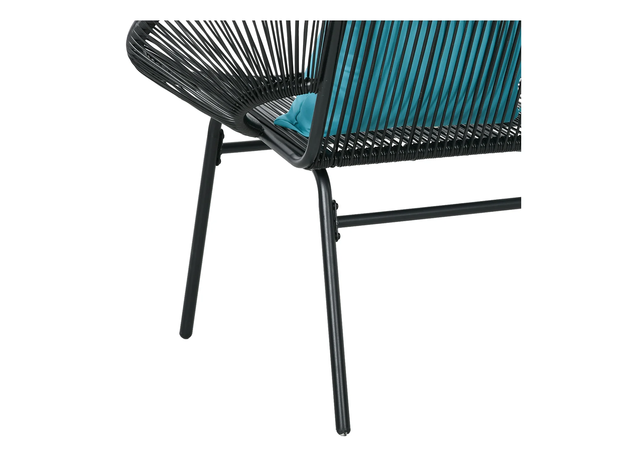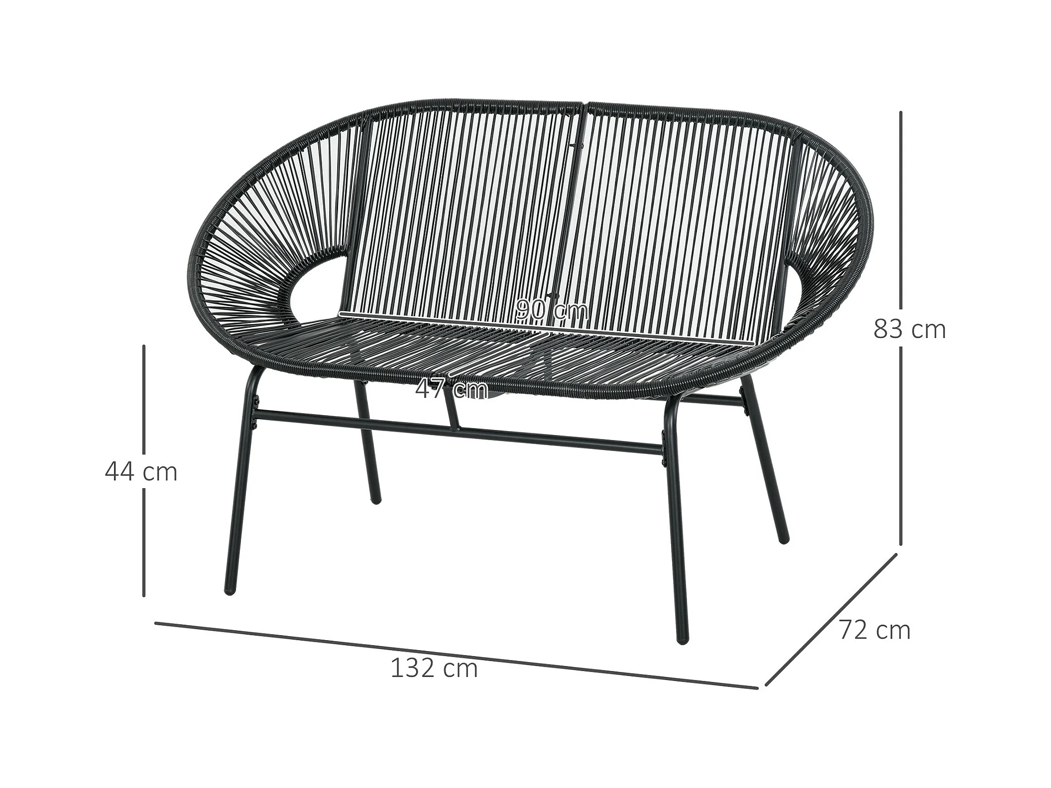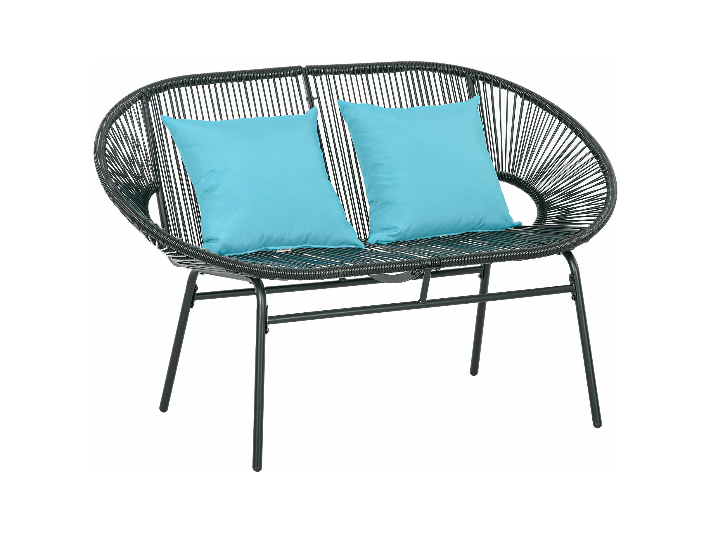 Banc de jardin 2 places design Acapulco 2 coussins métal résine filaire noir