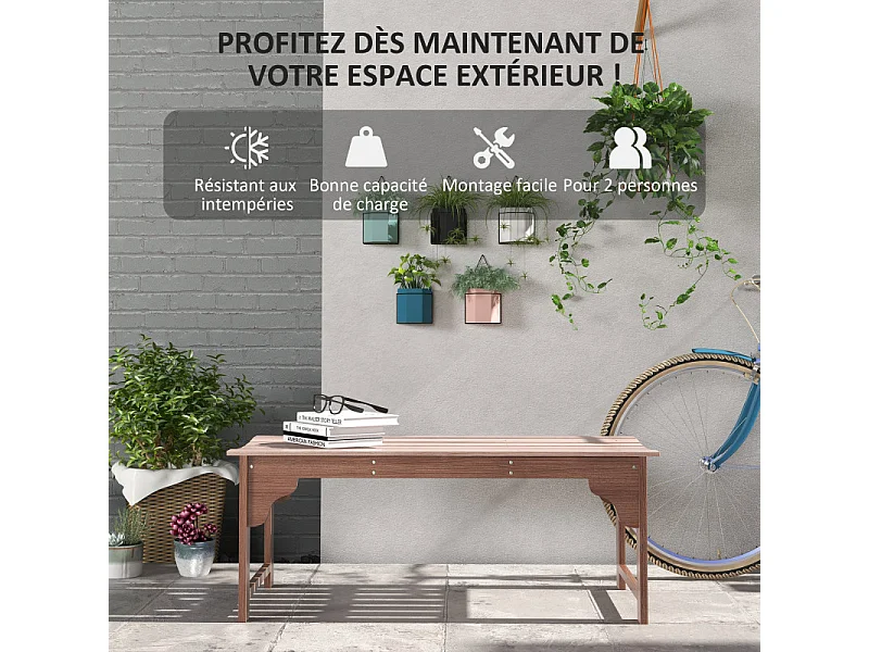 Table basse rectangulaire de jardin plateau à lattes pieds réglables dim. 91L x 51l x 46H cm acier marron