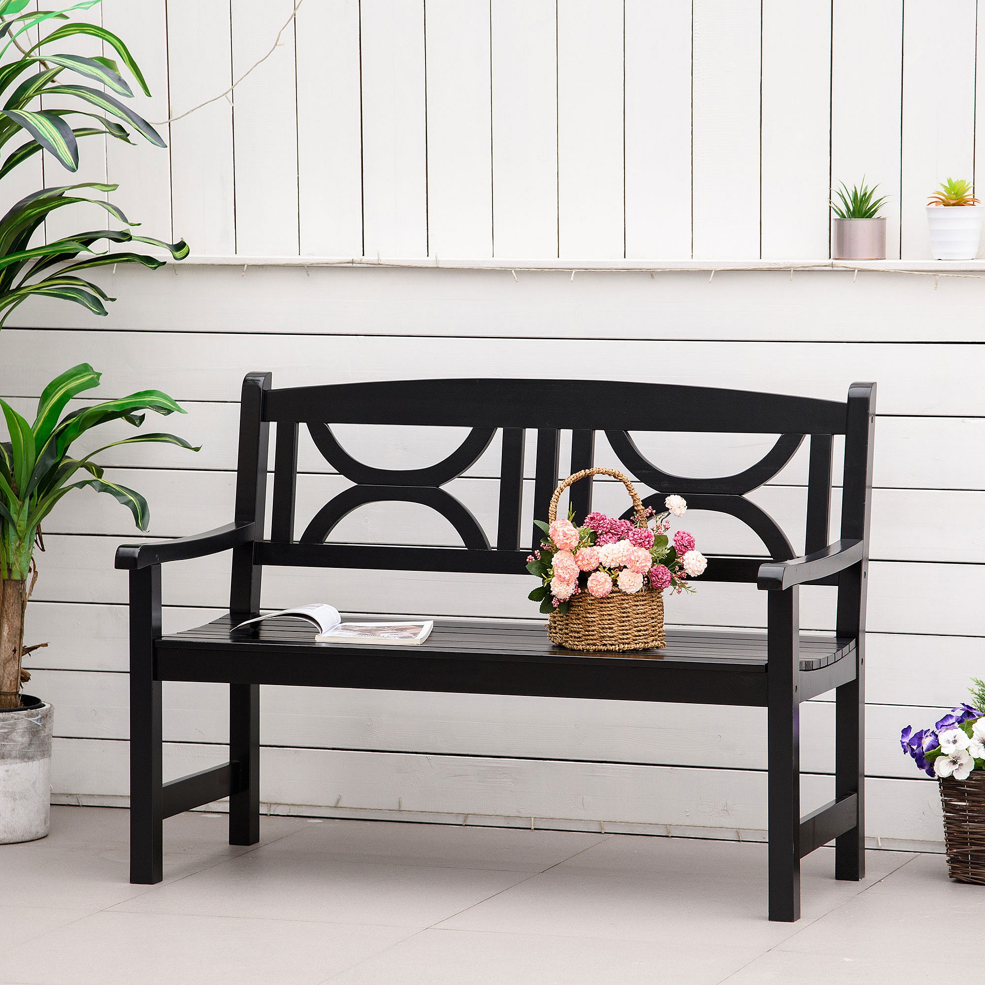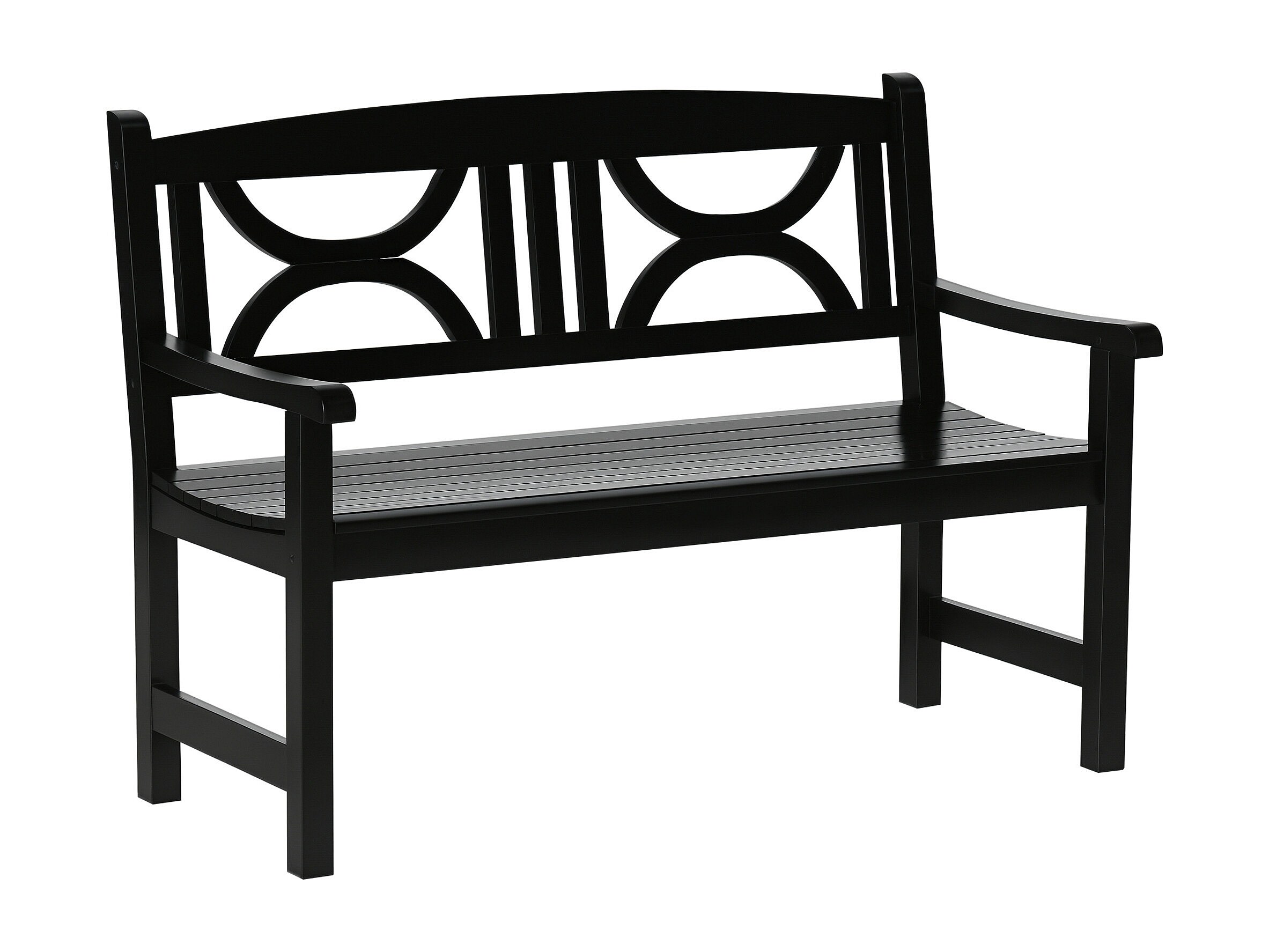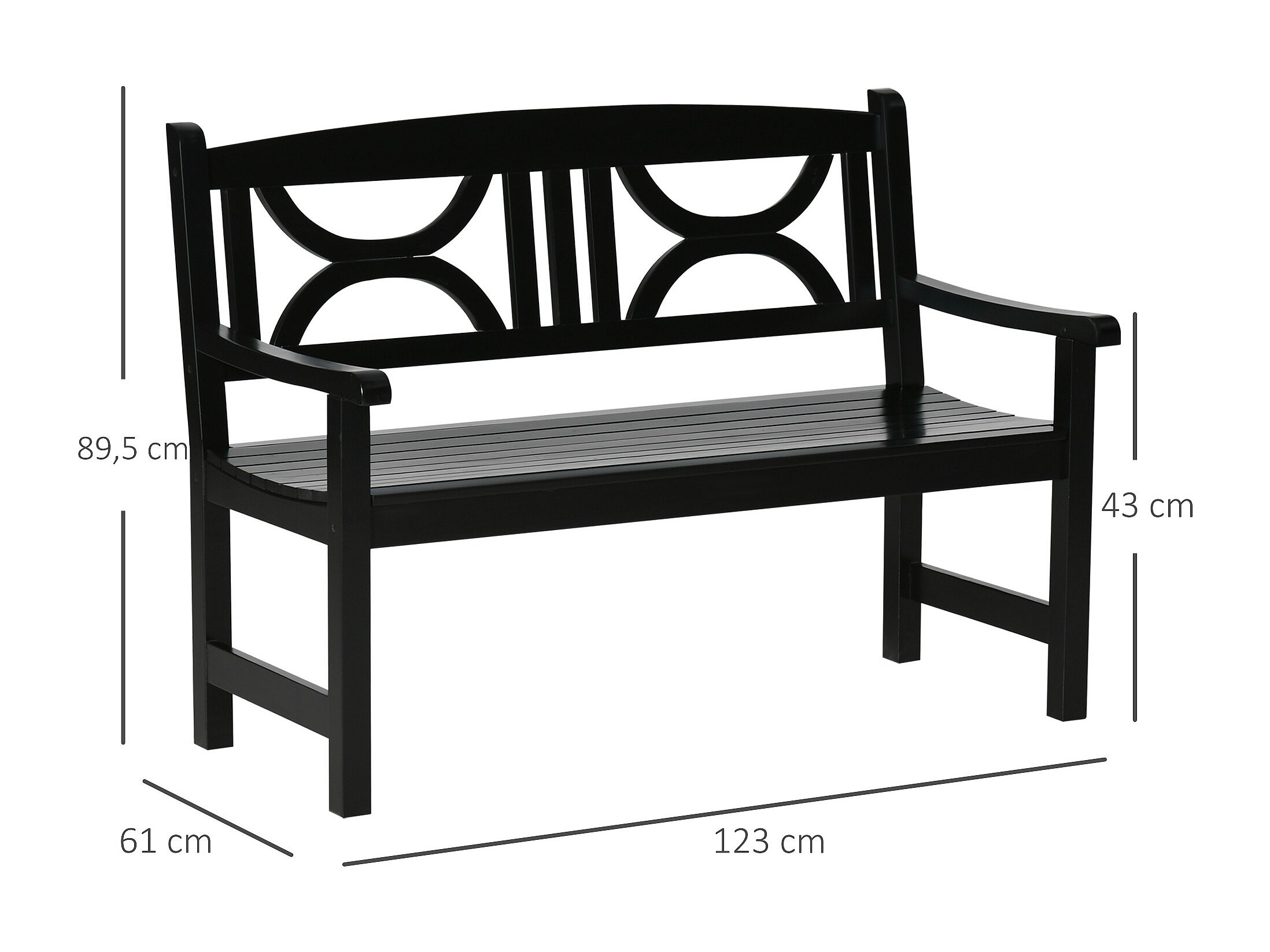 Banc de jardin 2 places style colonial dim. 123L x 61l x 89.5H cm assise à lattes dossier ajouré motif tribal bois peuplier noir