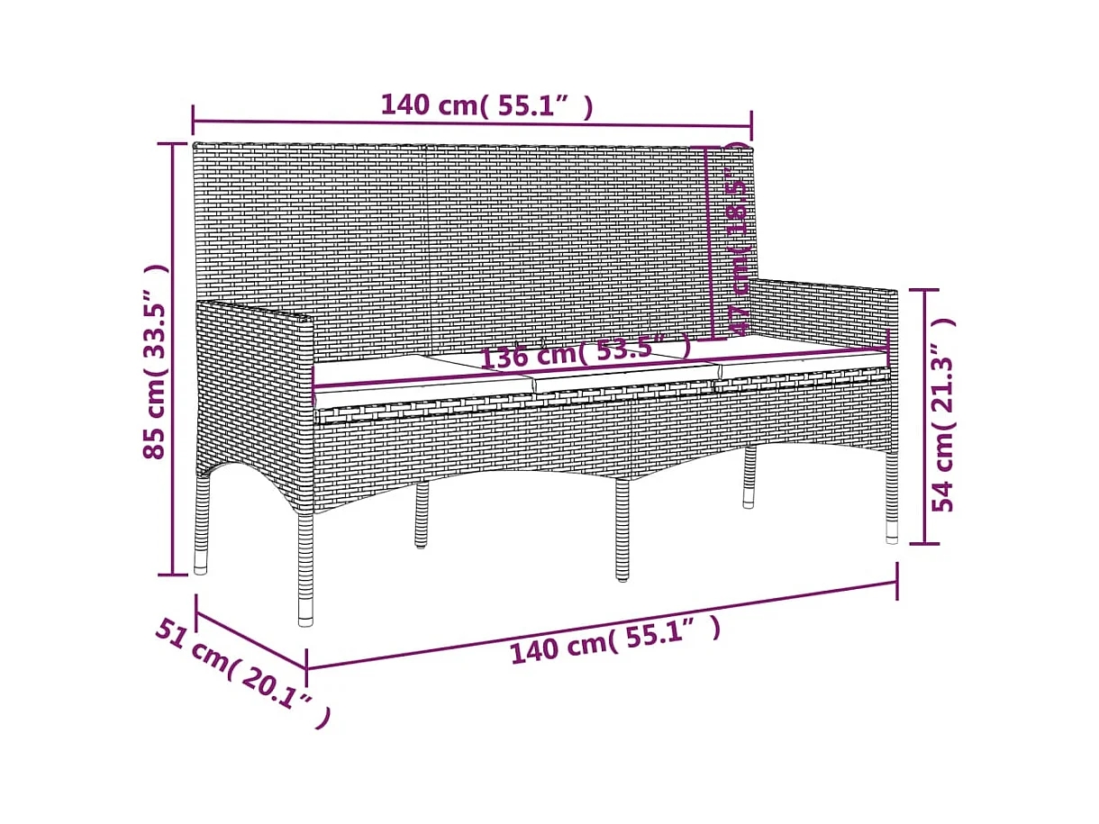 Banc de jardin 3 places avec coussins gris résine tressée FR951858