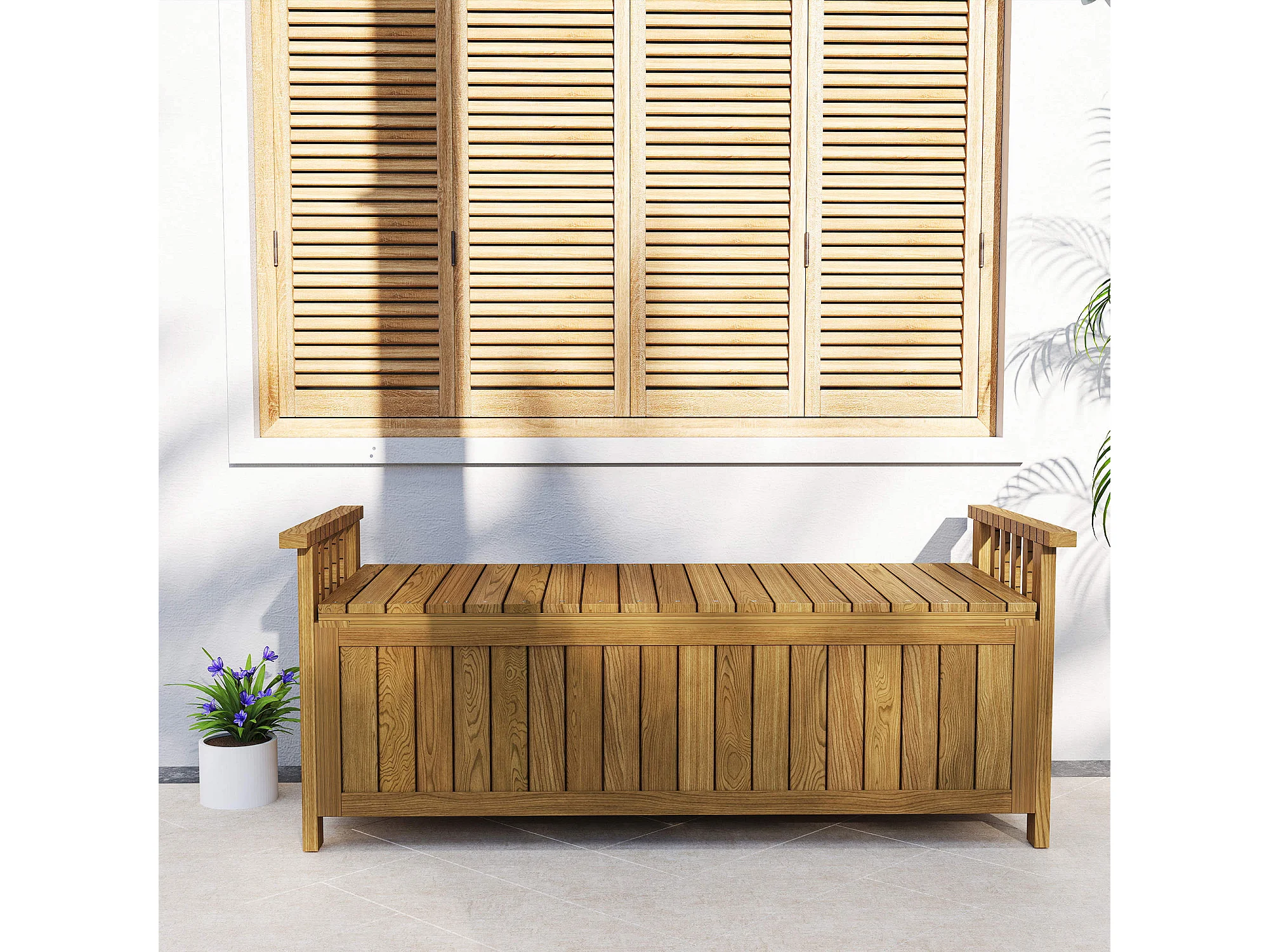 Banc de jardin avec coffre Rosay marron clair