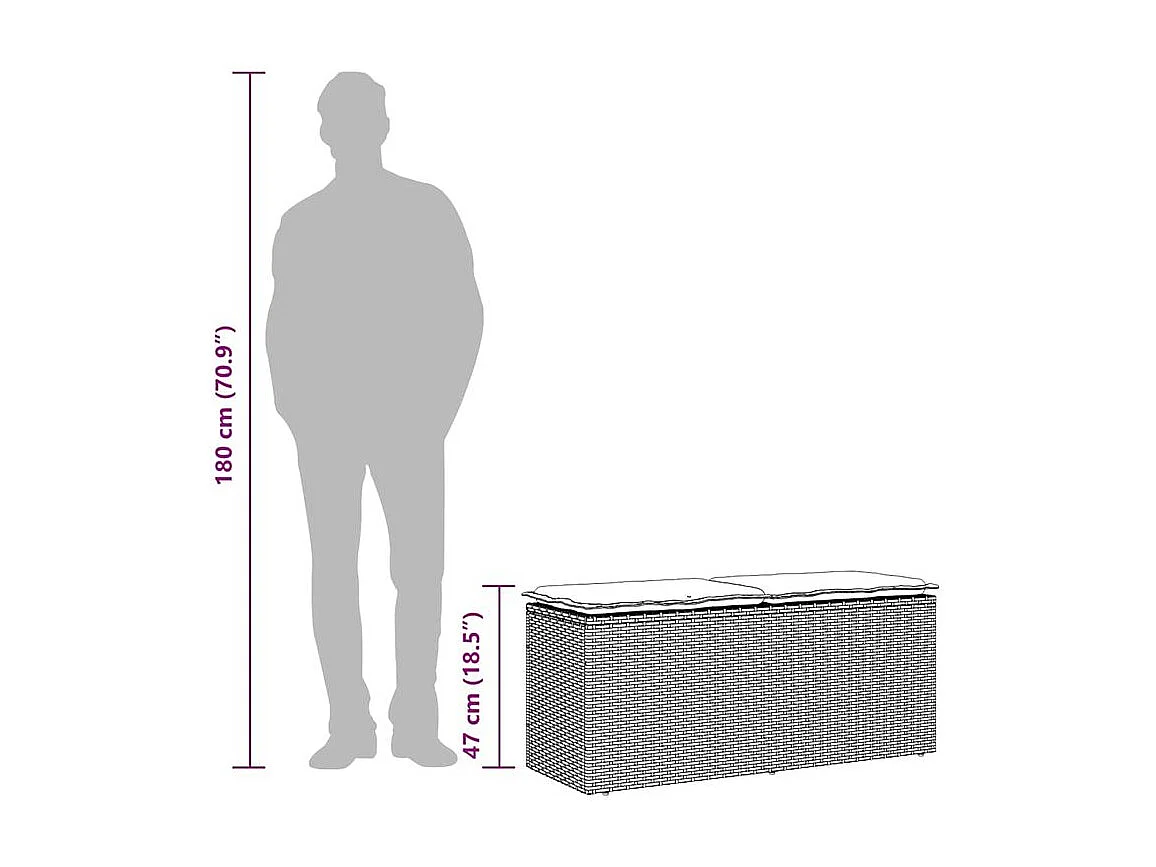 Banc de rangement avec coussin gris 115x51x52 résine tressée