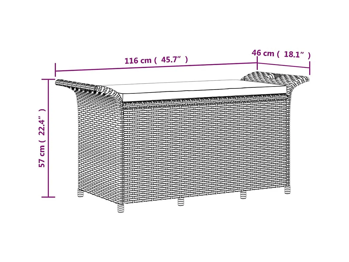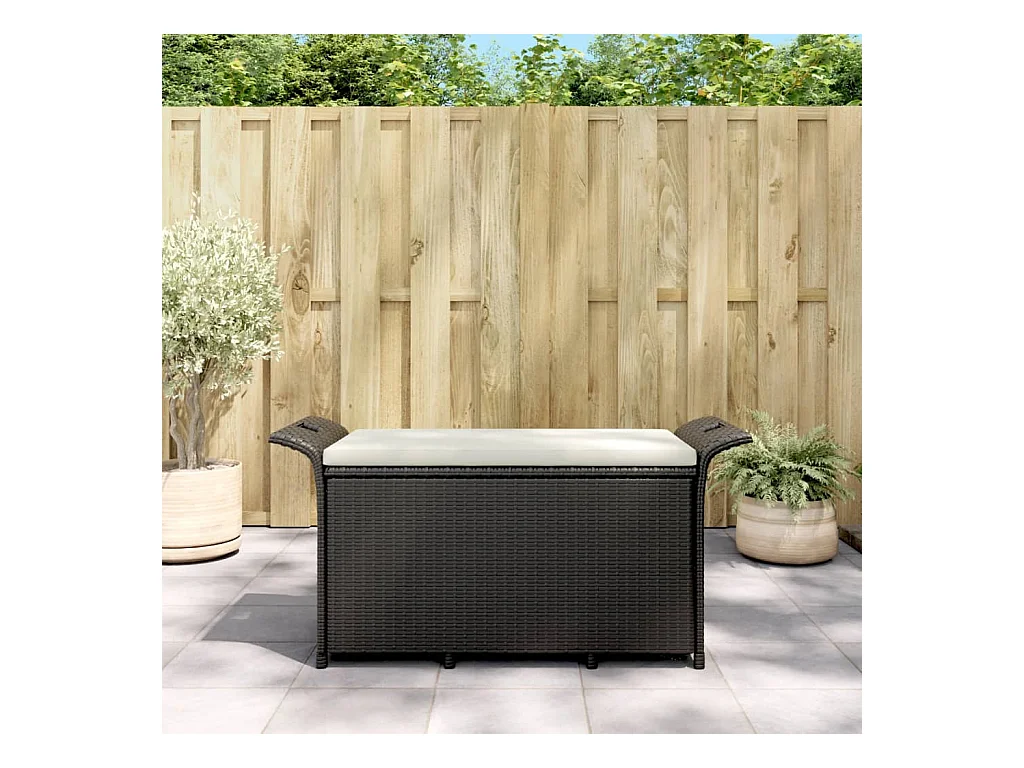 Banc de jardin avec coussin noir 116x46x57 résine tressée