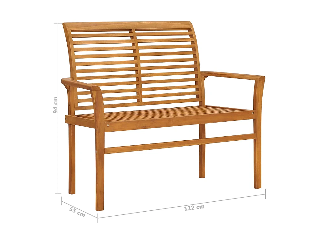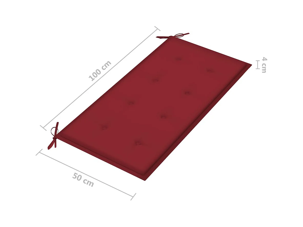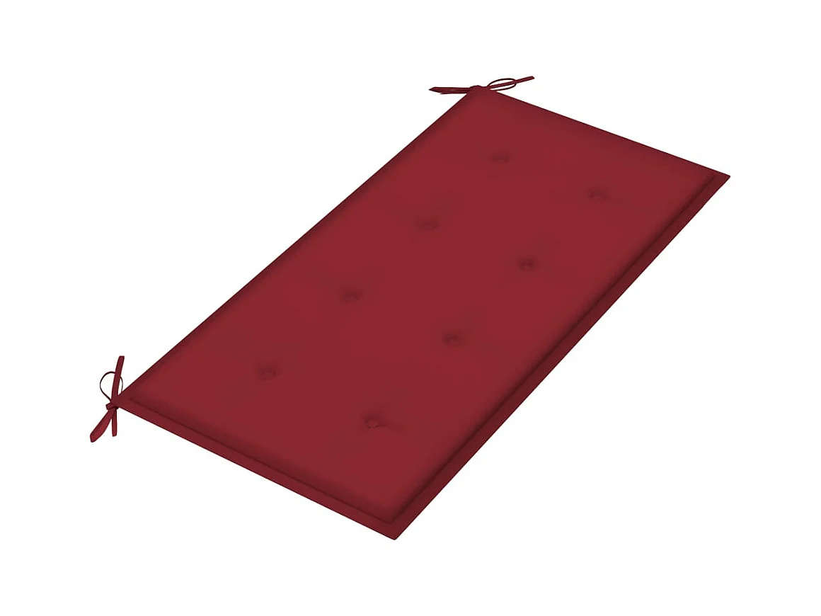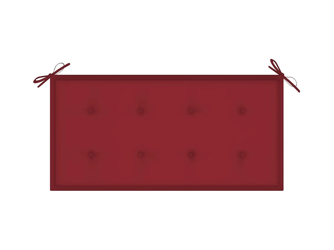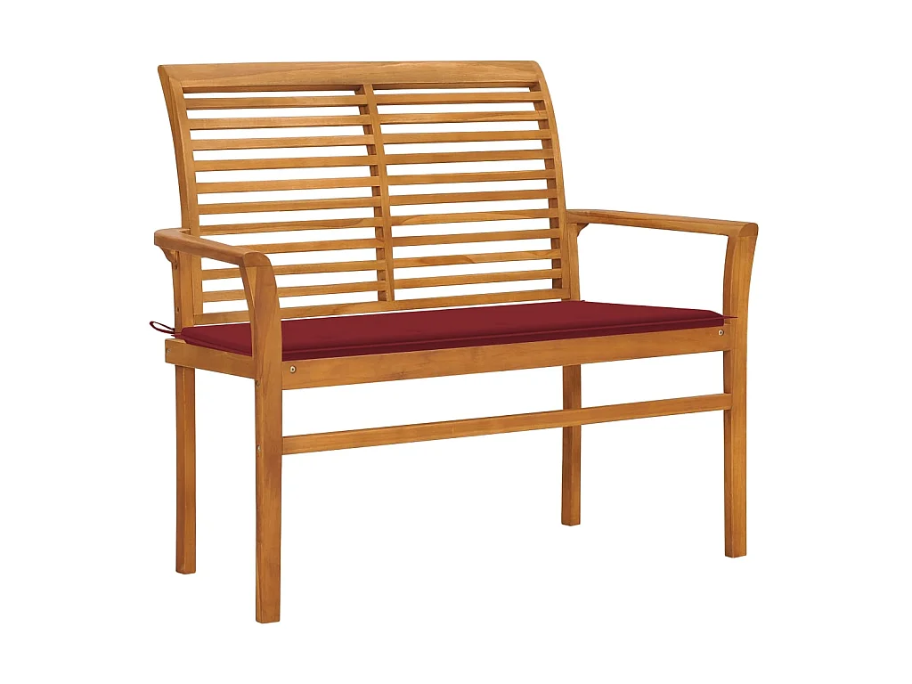Banc de jardin avec coussin rouge bordeaux 112cm Teck massif