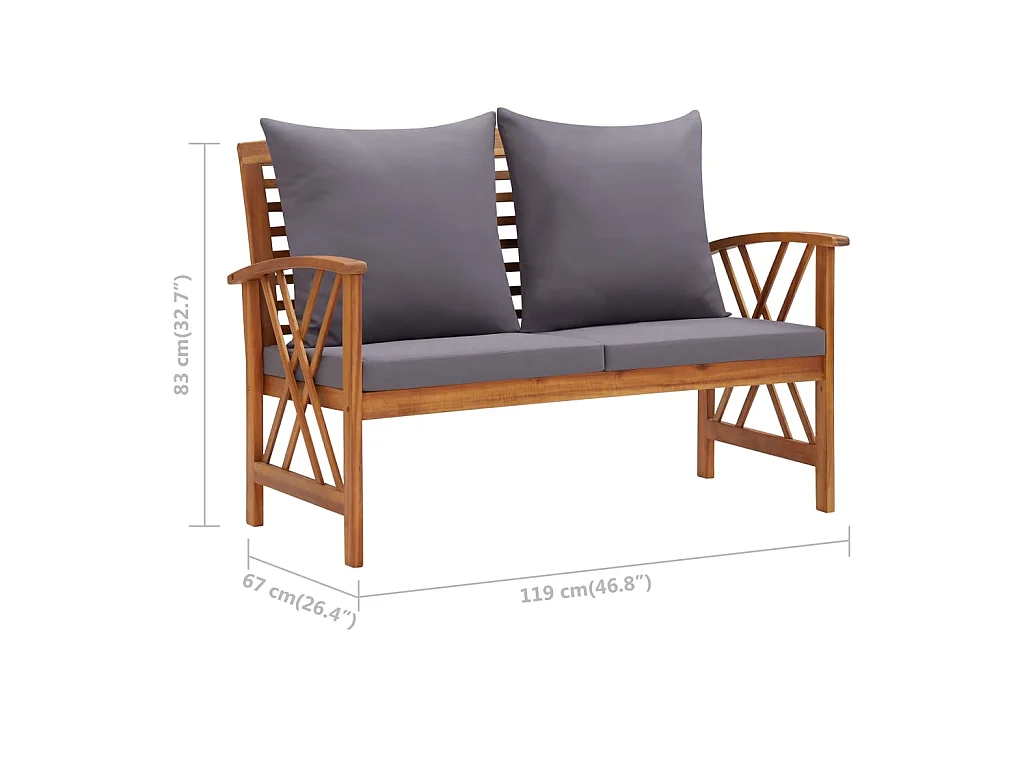 Banc de jardin avec coussins 119cm Bois solide d'acacia