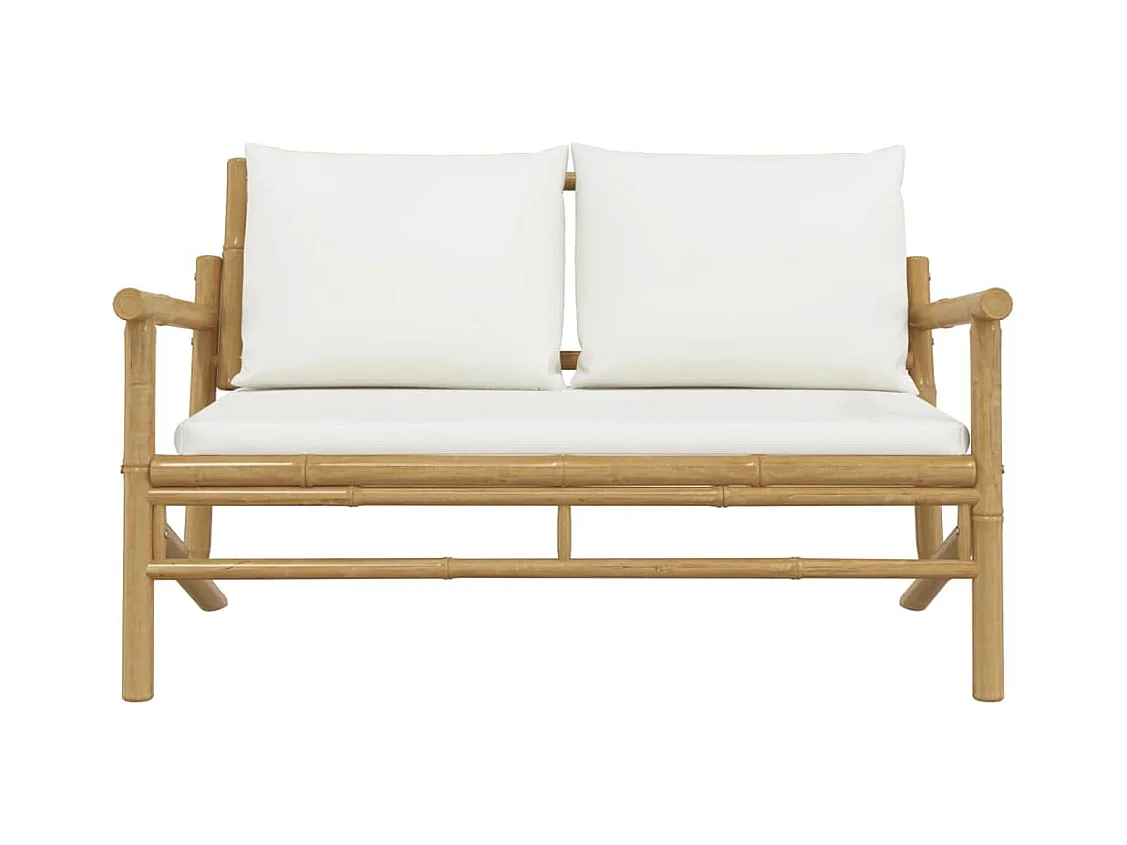 Banc de jardin avec coussins blanc crème bambou FR690452