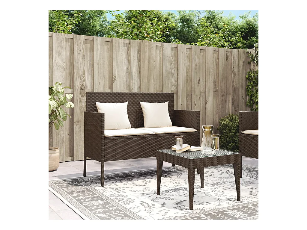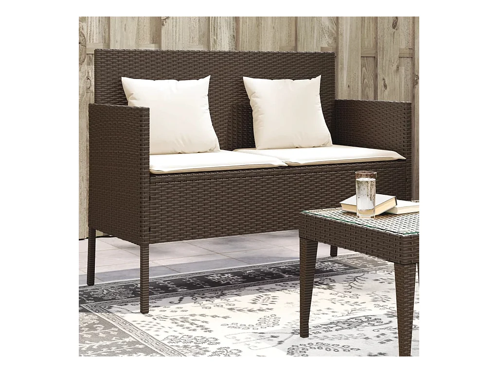 Banc de jardin avec coussins marron résine tressée