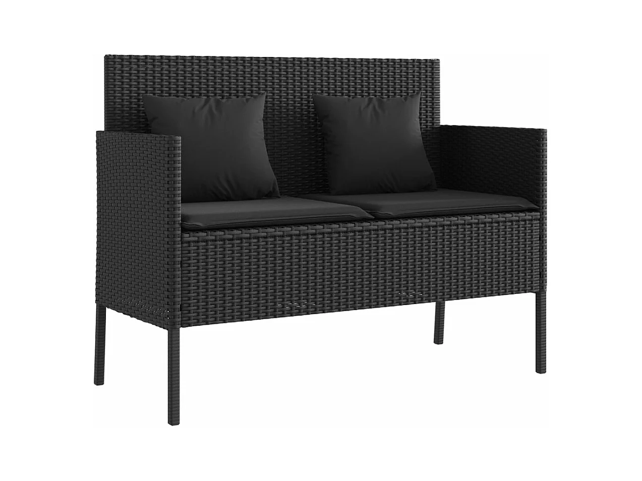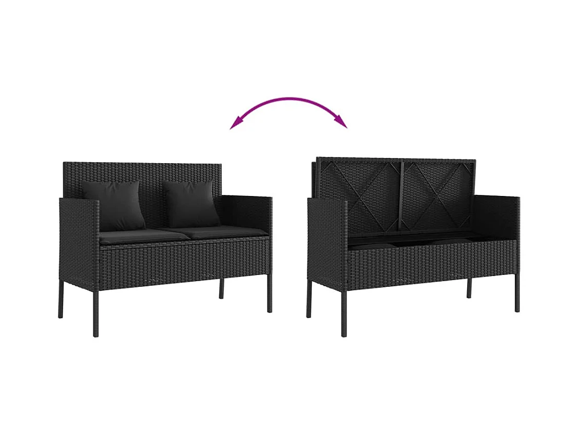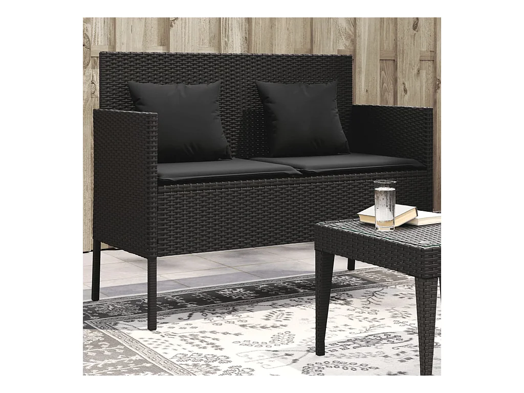 Banc de jardin avec coussins noir résine tressée