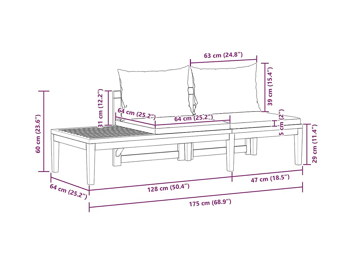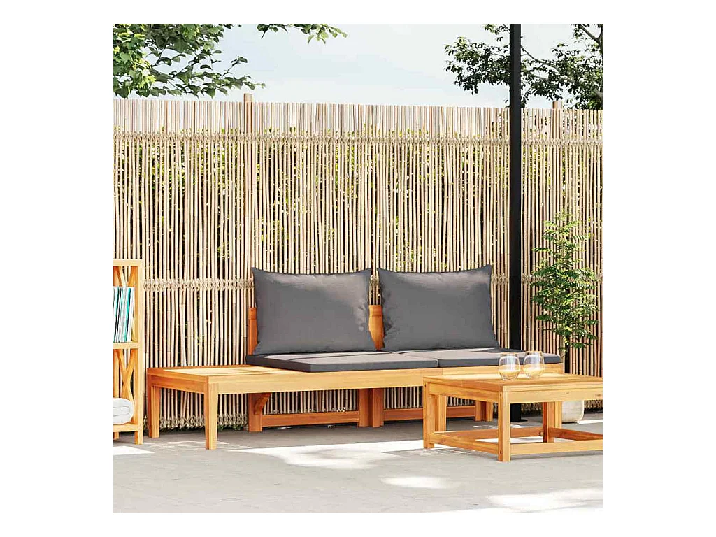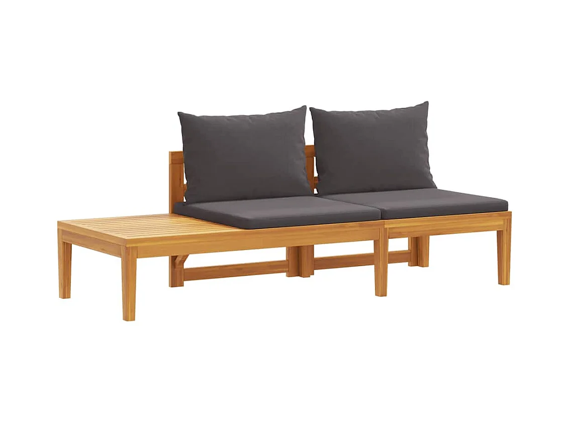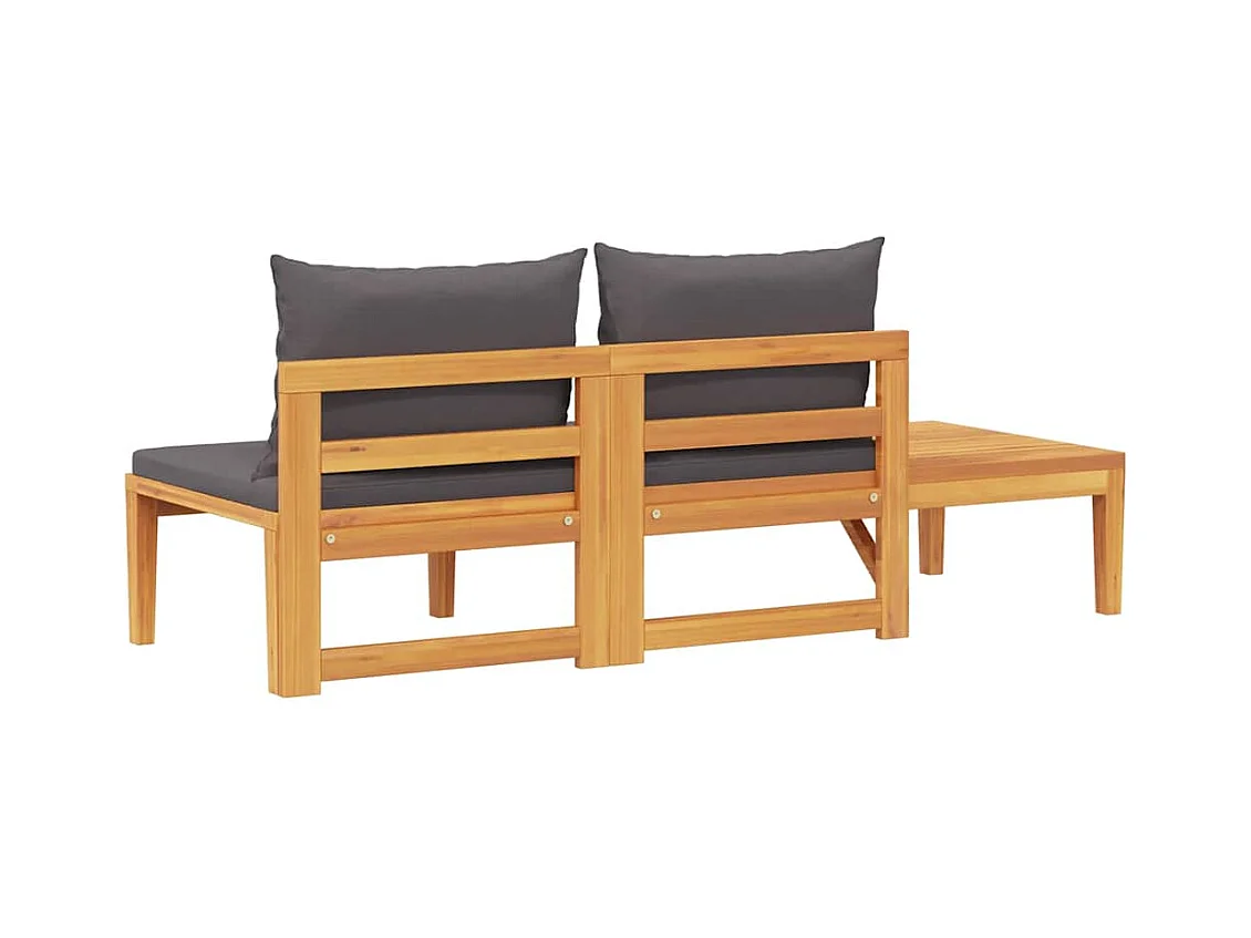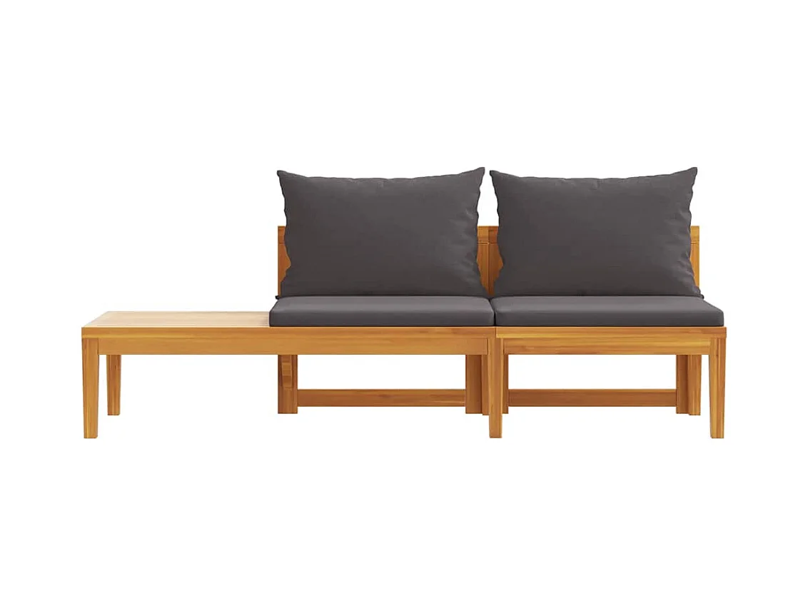 Banc de jardin avec table avec coussins gris foncé Teck solide