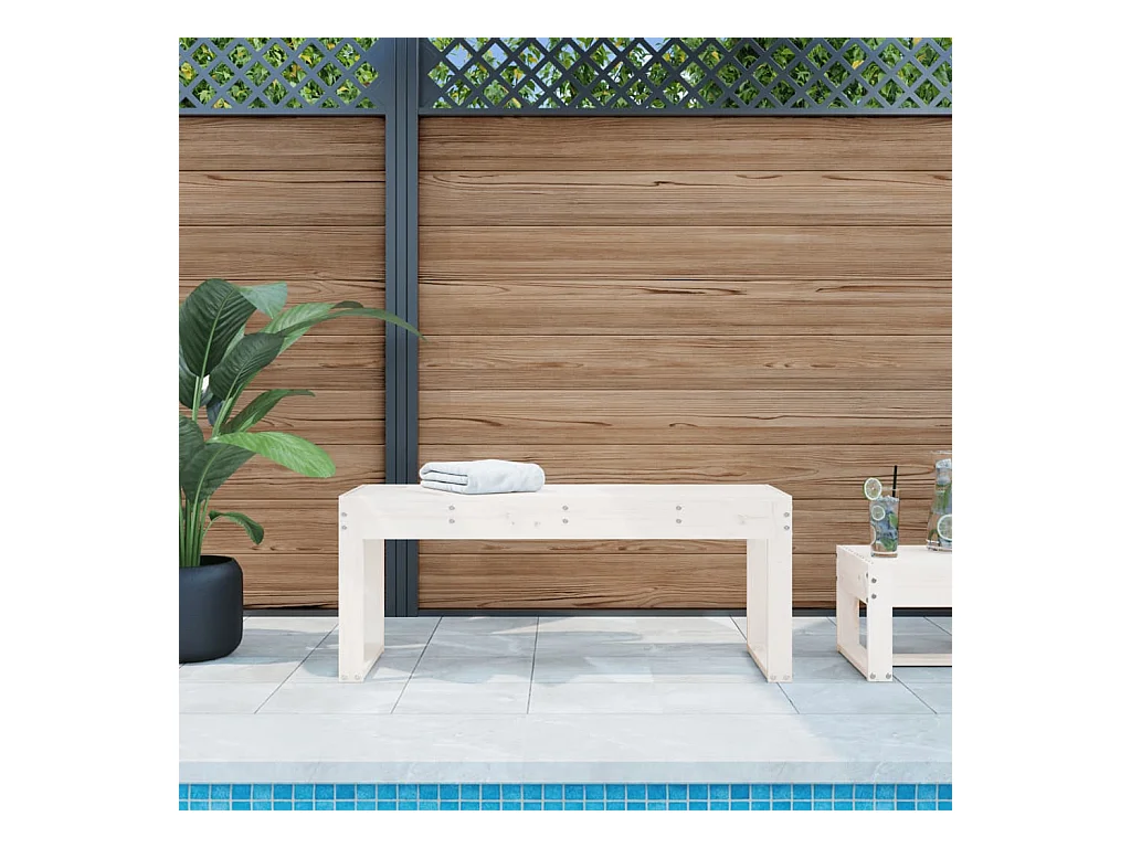 Banc de jardin blanc 108x35x45 bois massif de pin