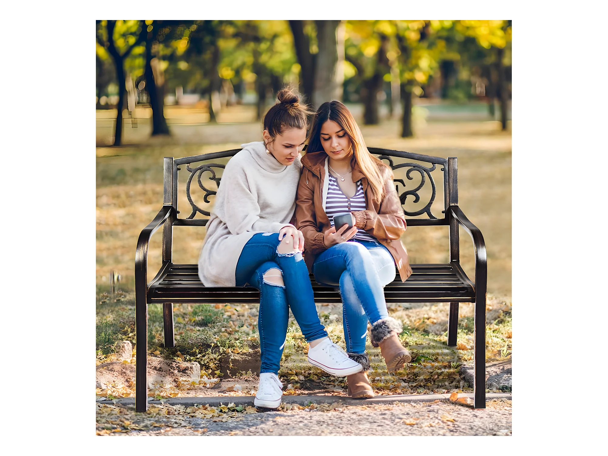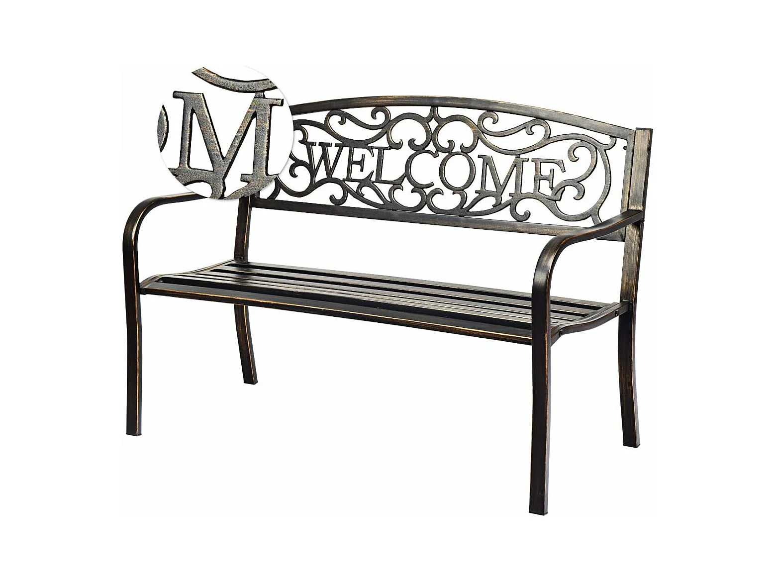 Banc de Jardin 3 Places Extérieur Cadre Métallique Style Ancien 127 x 63,5 x 89 cm Résistant aux Intempéries Charge 320kg