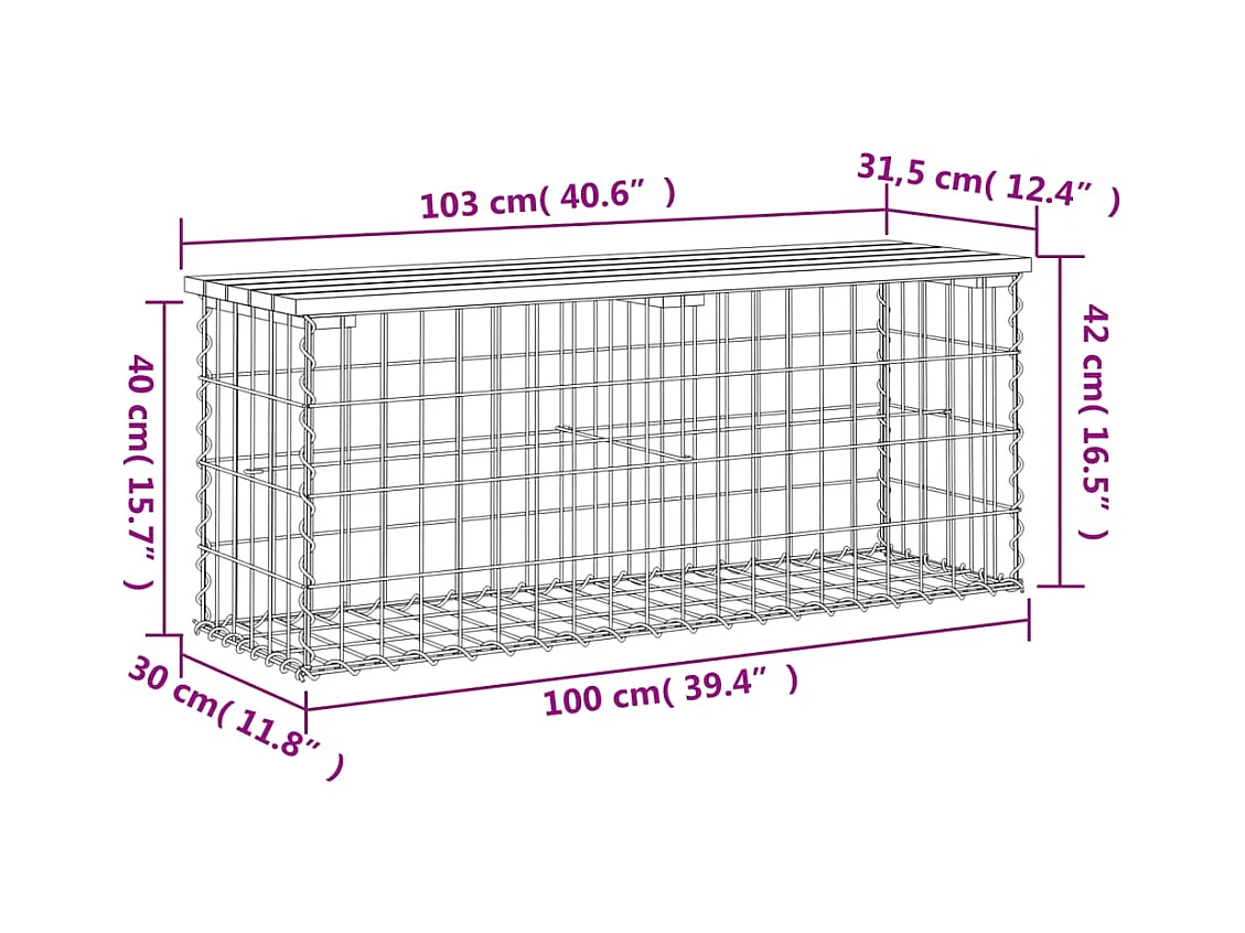 Banc de jardin design de gabion 103x44x42 bois massif de pin
