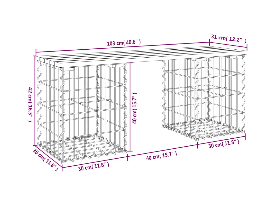 Banc de jardin design gabion 103x31x42 cm bois de pin imprégné