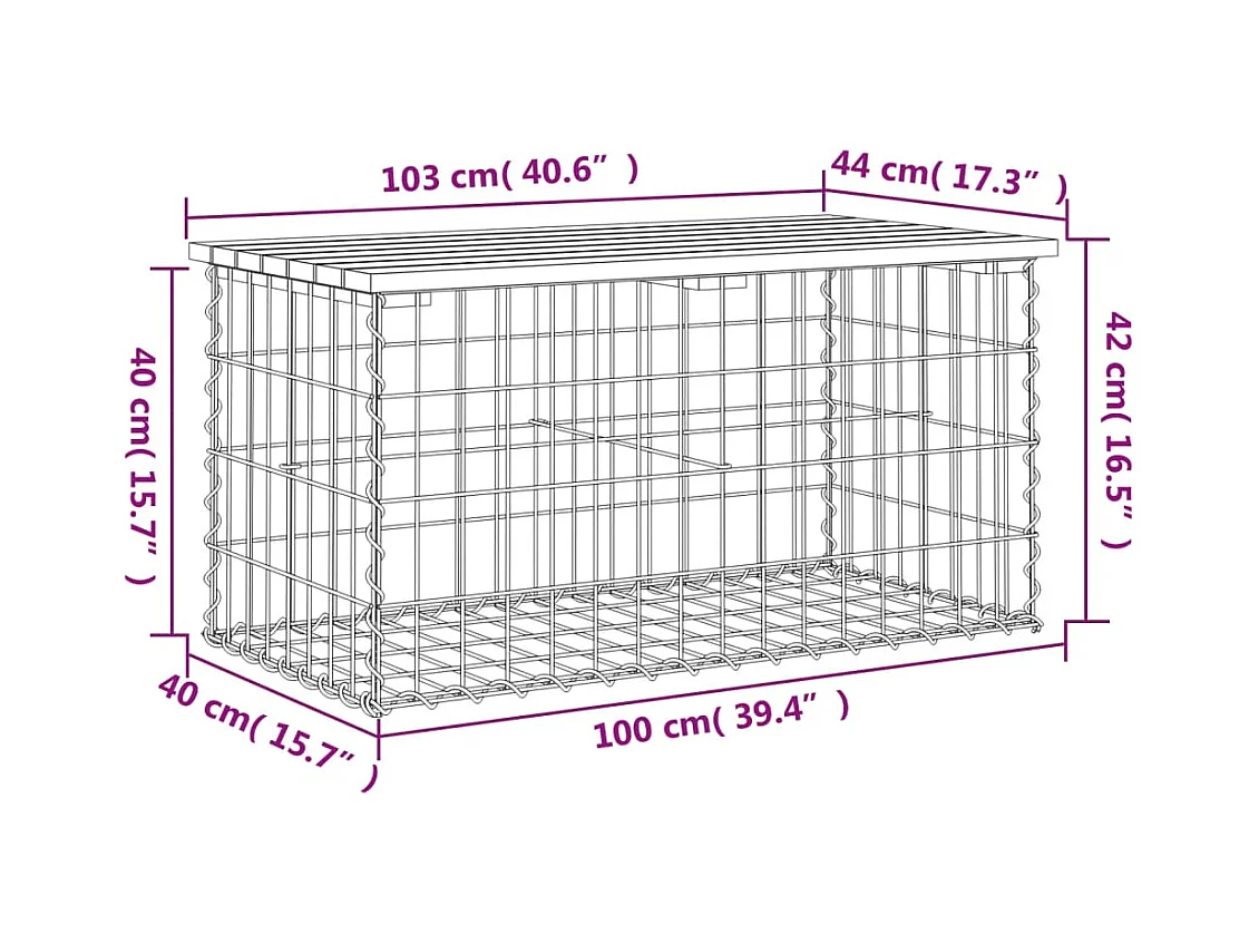 Banc de jardin design de gabion 103x44x42 bois massif de pin