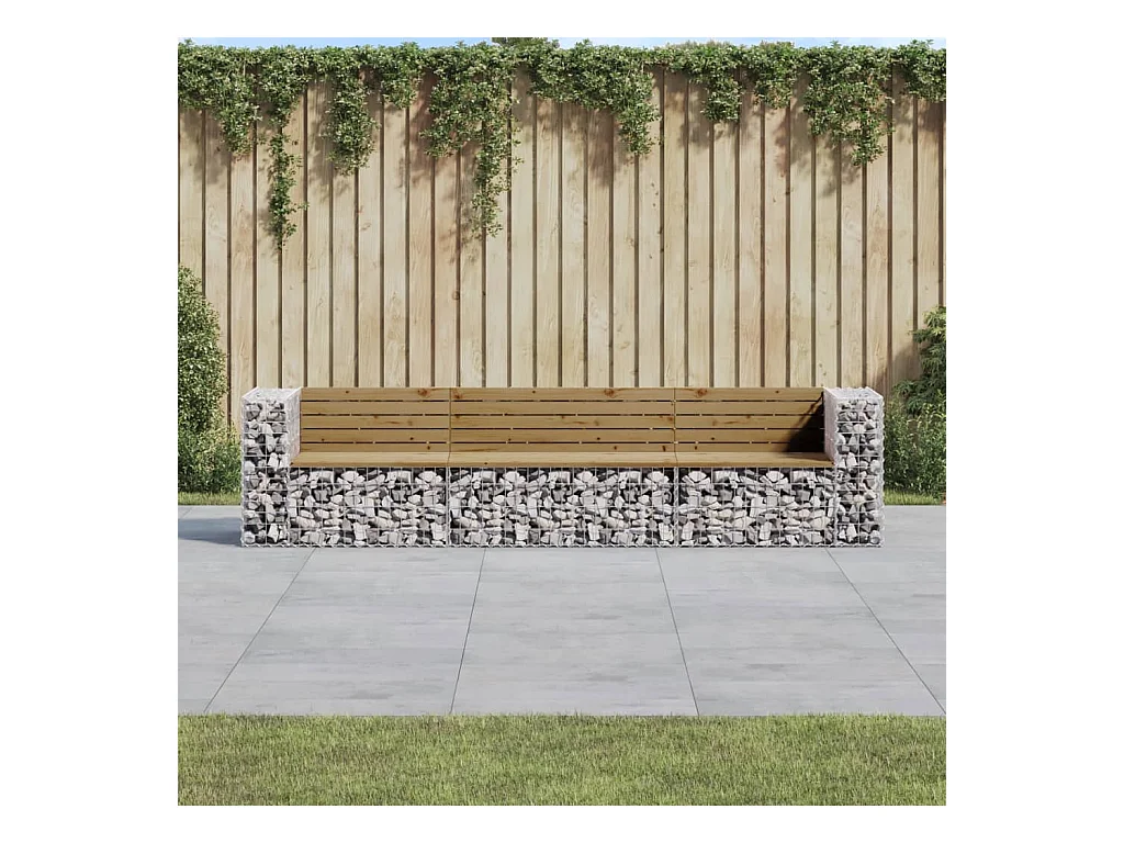 Banc de jardin design gabion 287x71x65,5cm bois de pin imprégné