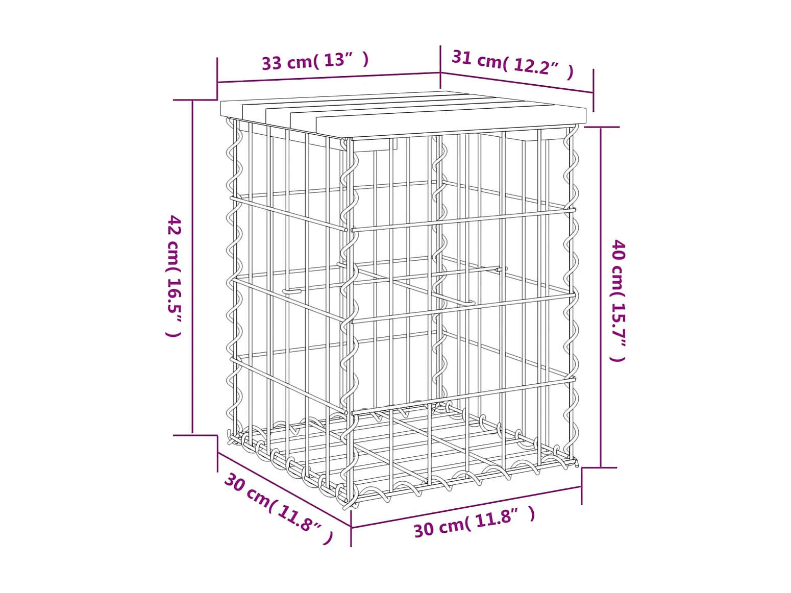 Banc de jardin design gabion 33x31x42 cm bois de pin imprégné