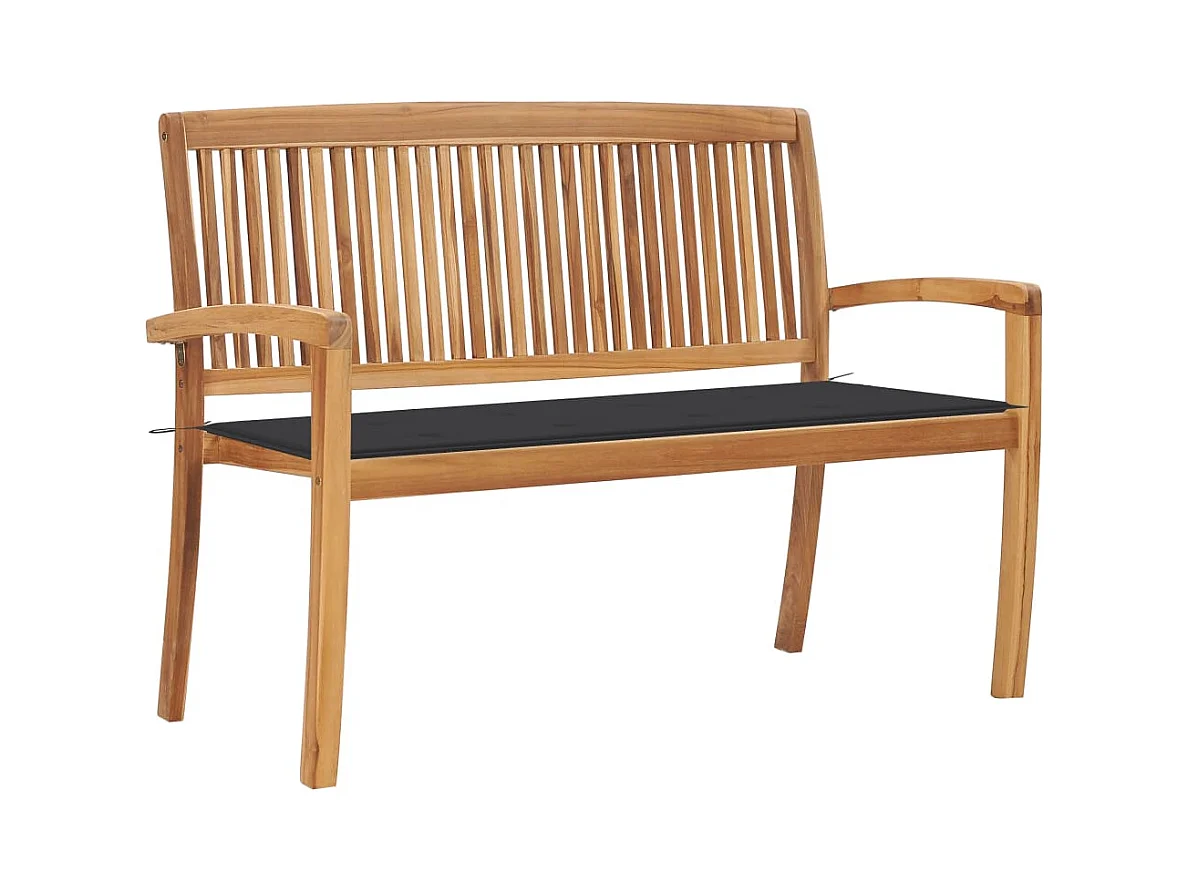 Banc de jardin empilable et coussin 128,5cm Bois de teck massif 14