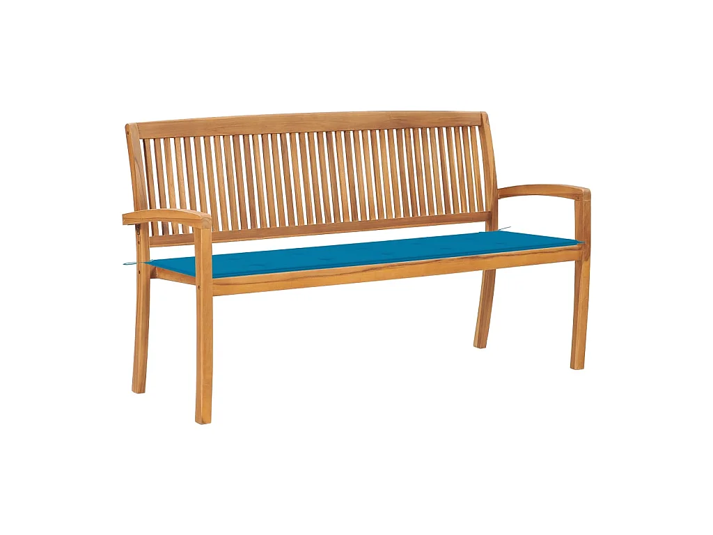Banc de jardin empilable et coussin 159cm Bois de teck massif 16