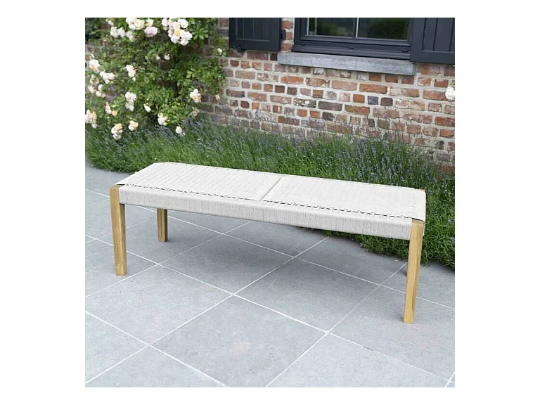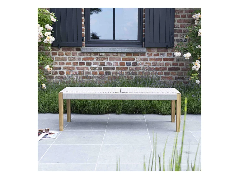 Banc de jardin en teck massif et cordage 140cm Beige CALVI