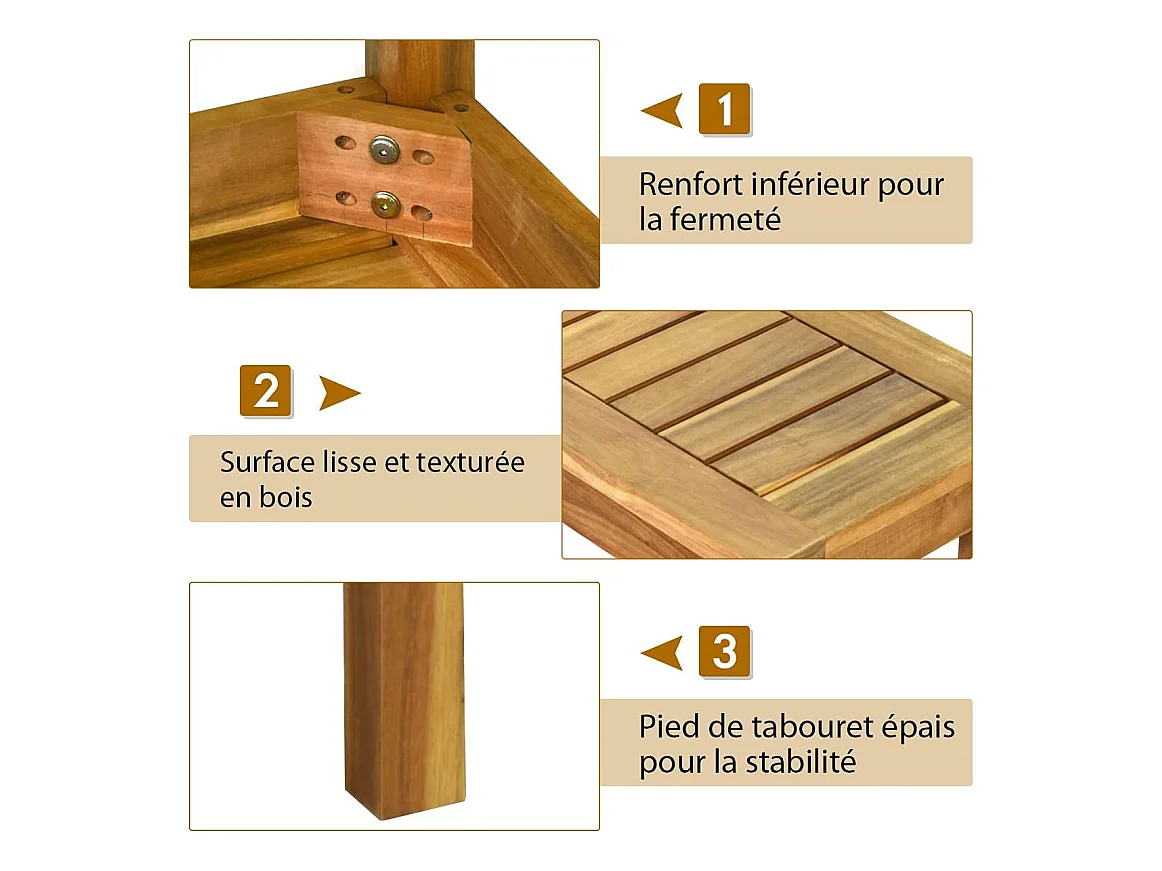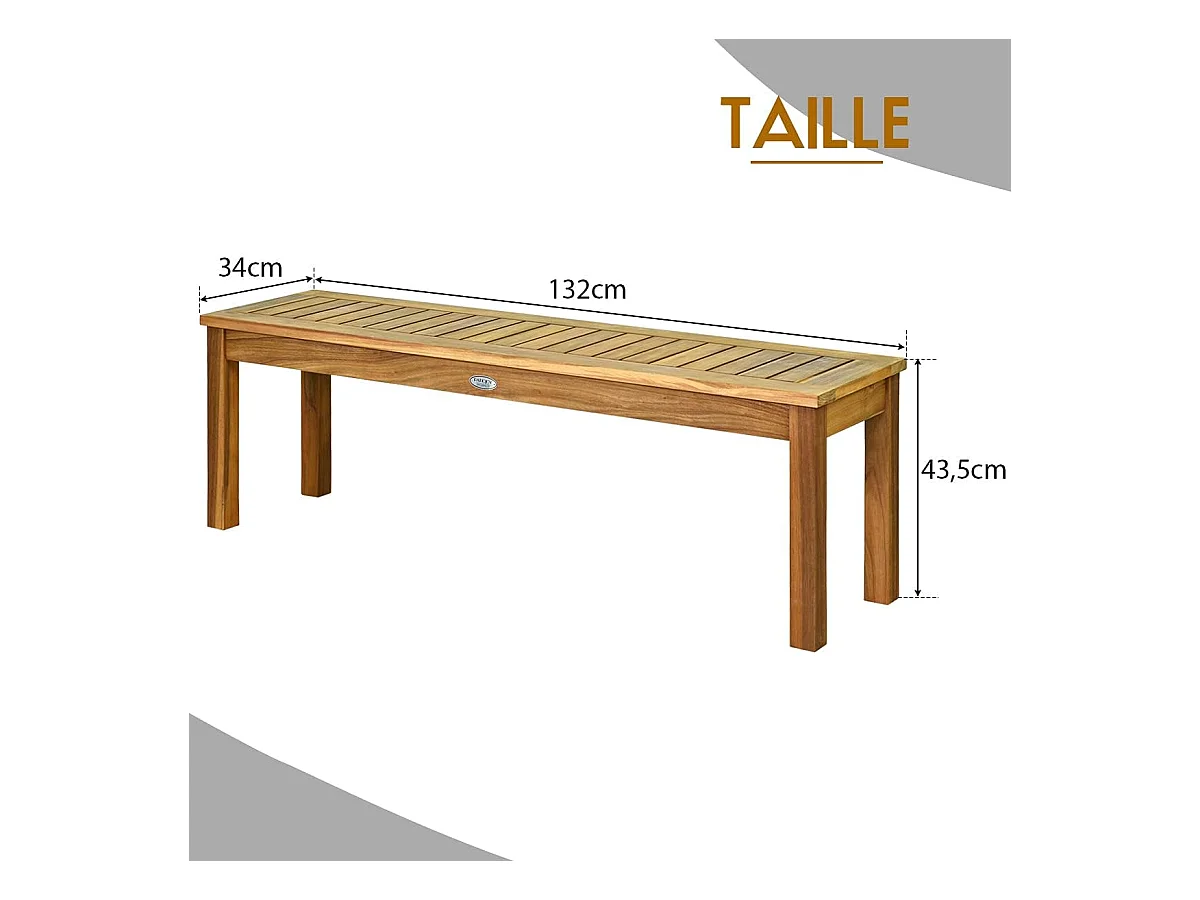 Banc de Jardin en Bois d’Acacia 132 x 34 x 43,5CM avec Pieds en U Charge Max 360KG