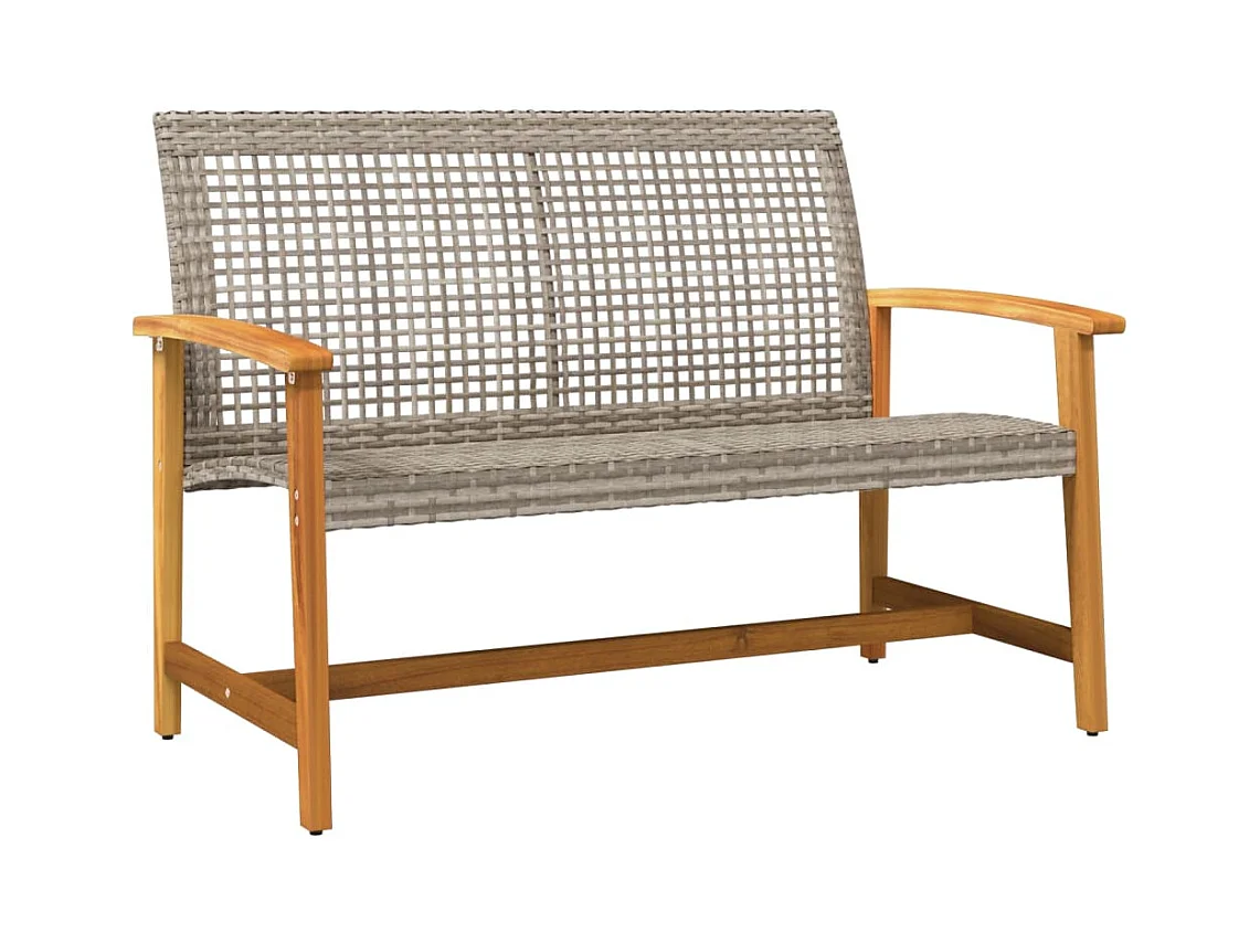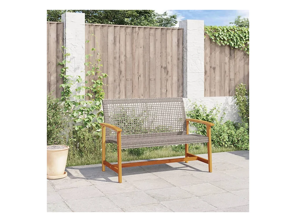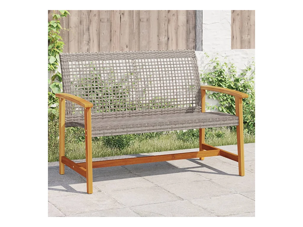 Banc de jardin gris 112cm résine tressée et bois d'acacia