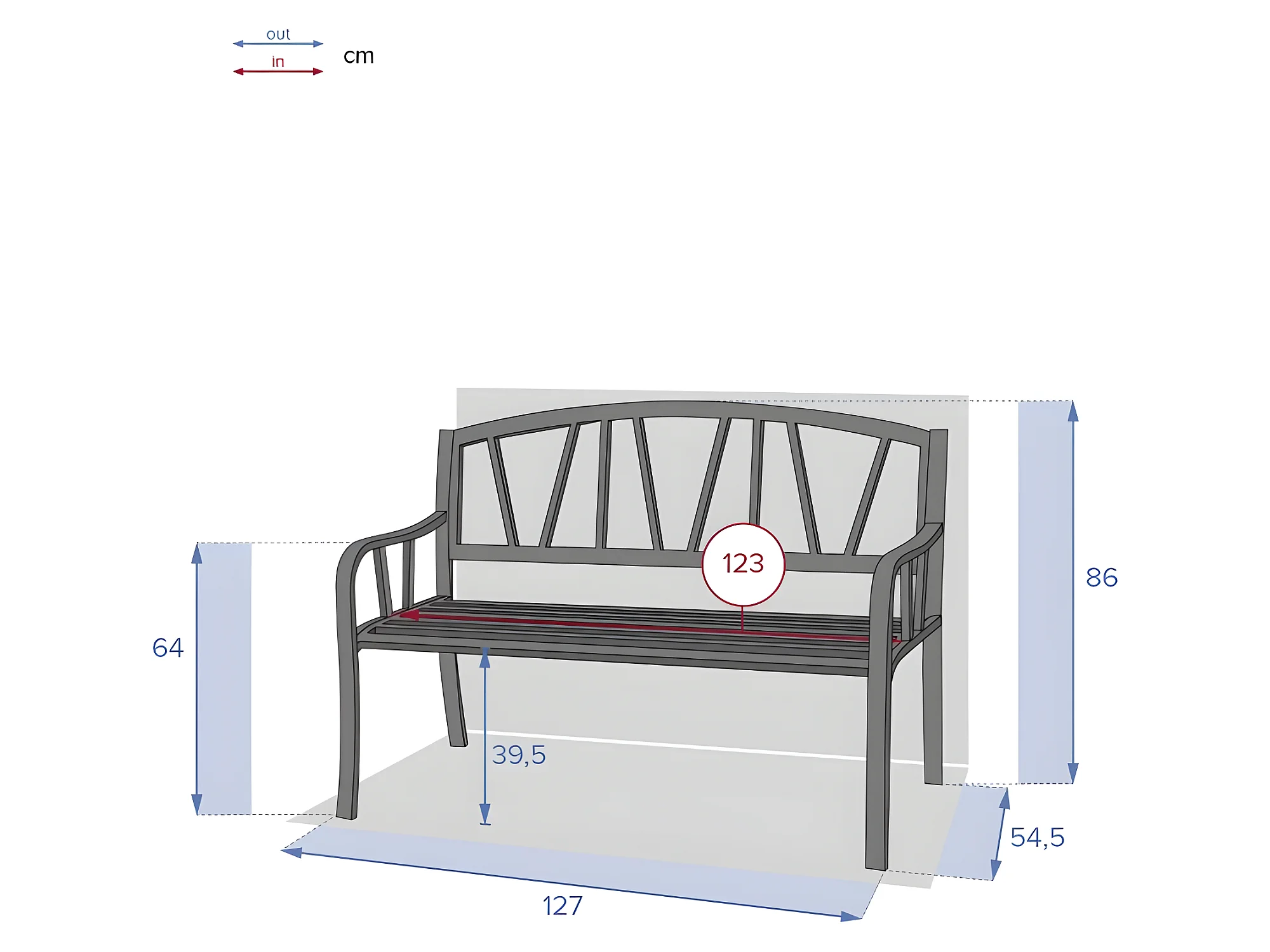 Banc de Jardin 2 Places en Métal 127 x 60 x 85 cm Style Classique Charge max : 280 KG Banquette de Jardin
