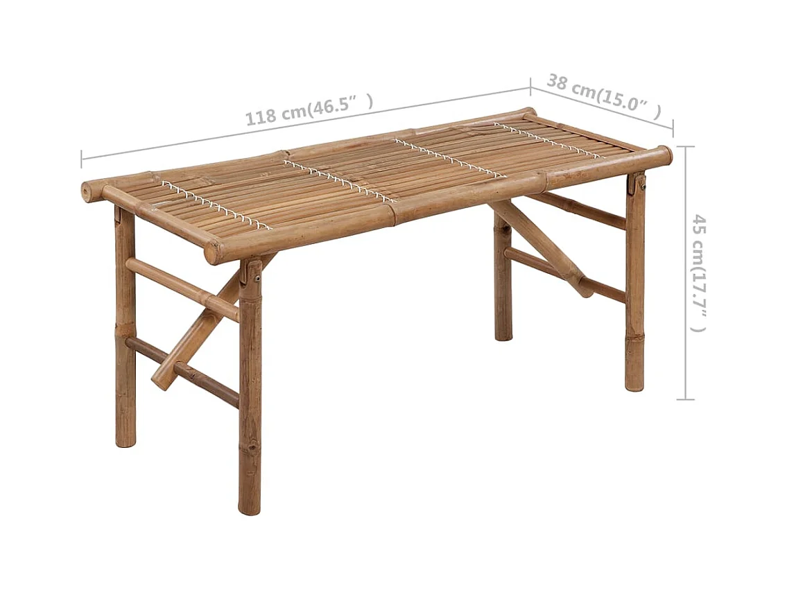 Banc de jardin pliable avec coussin 118cm Bambou 4