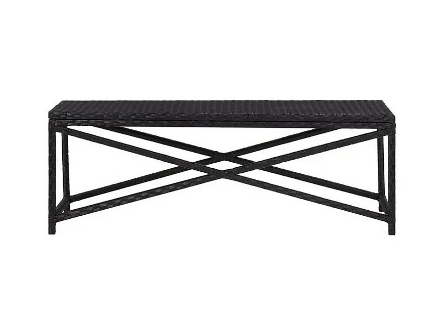 Banc de jardin avec coussin noir 110x40x44 cm résine tressée