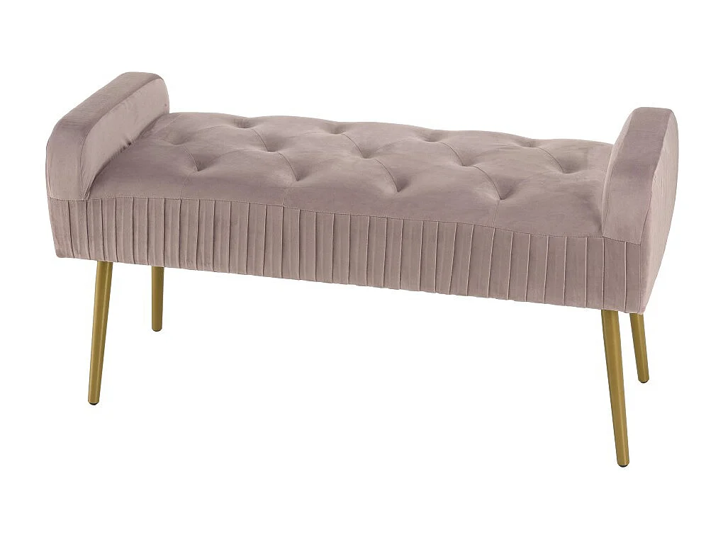 AGATHE - Banc de lit velours rose poudré pieds métal doré
