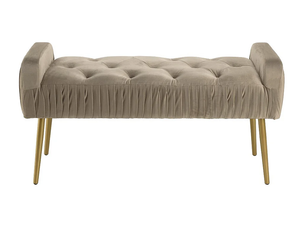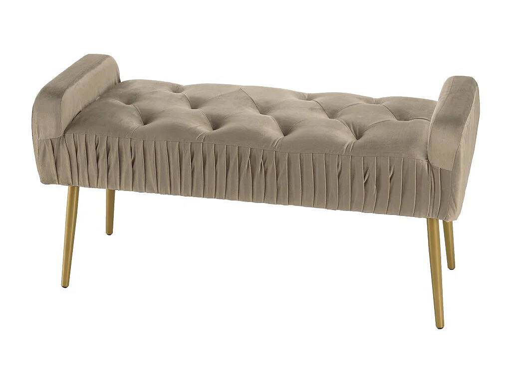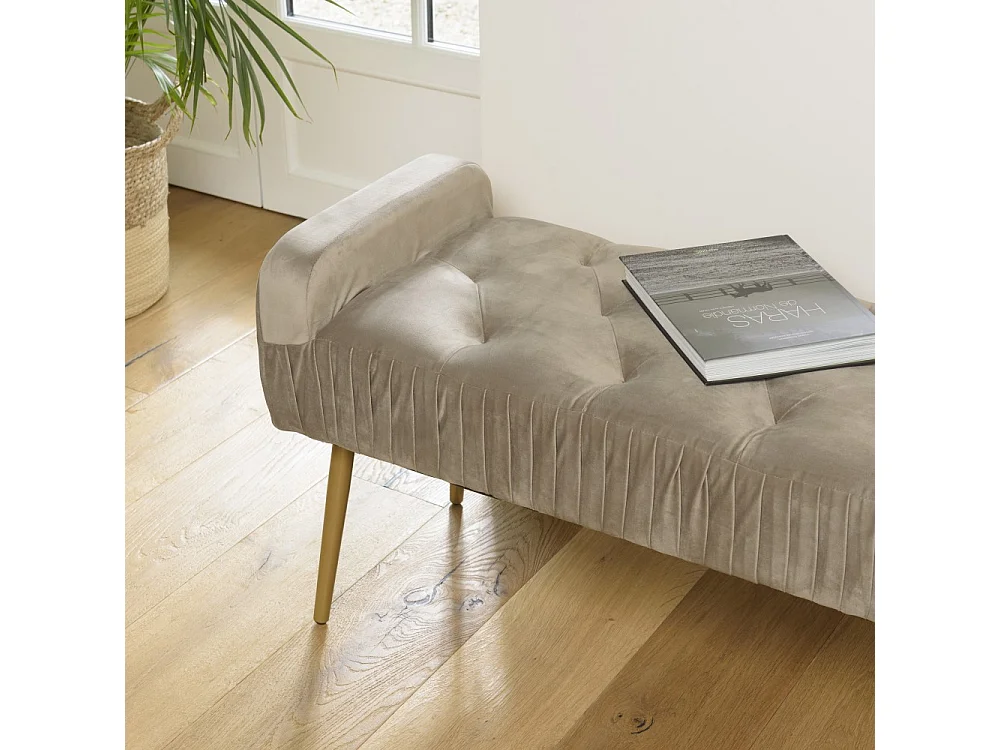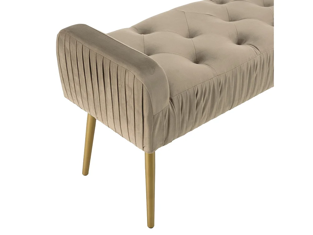 AGATHE - Banc de lit velours taupe pieds métal doré