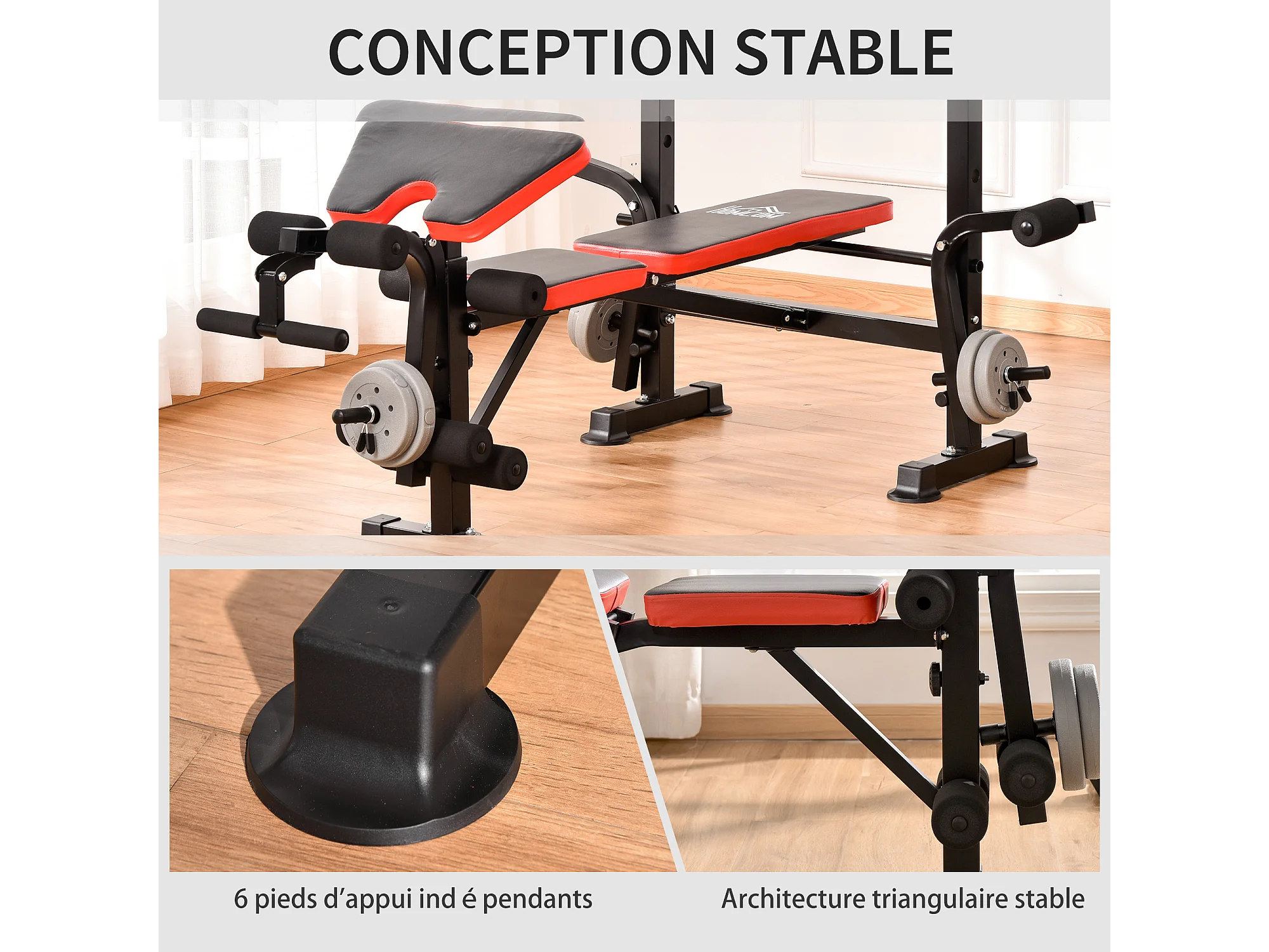 Banc de musculation Fitness entrainement complet avec support d'haltères dossier réglable acier noir rouge