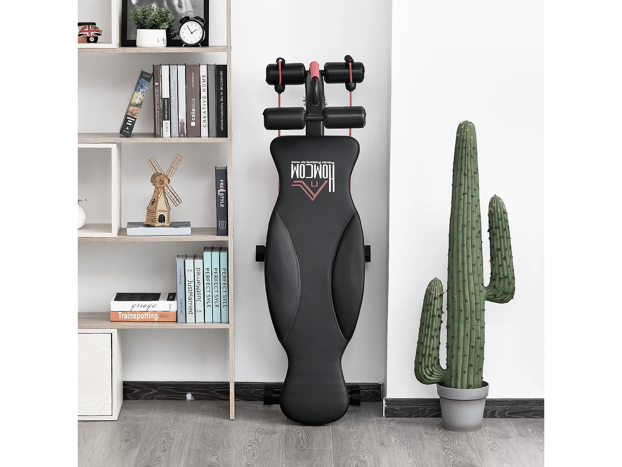 Banc de musculation pliable inclinable multifonction banc Fitness sit-up bandes d'extension latérales + poignée traction acier revêtement synthétique noir rouge