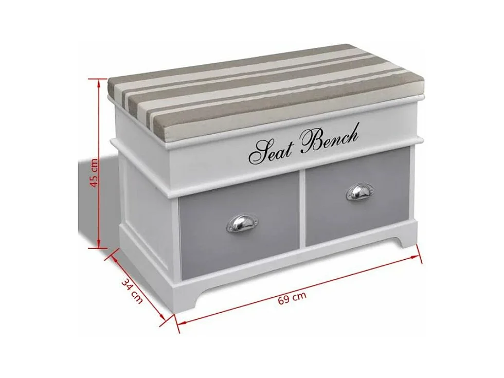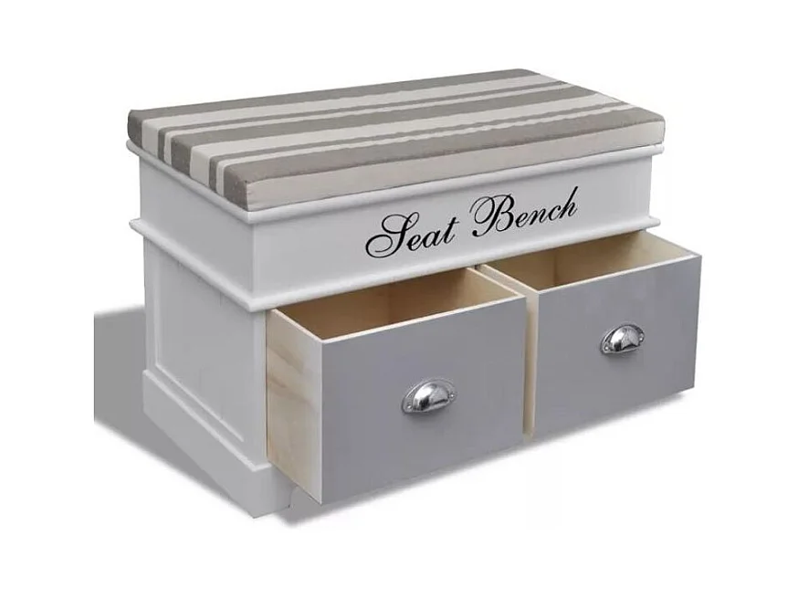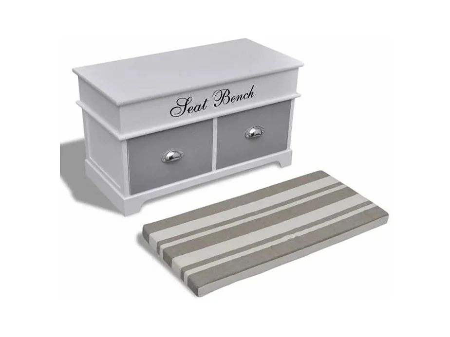 Banc de rangement 2 tiroirs bois paulownia clair Laula