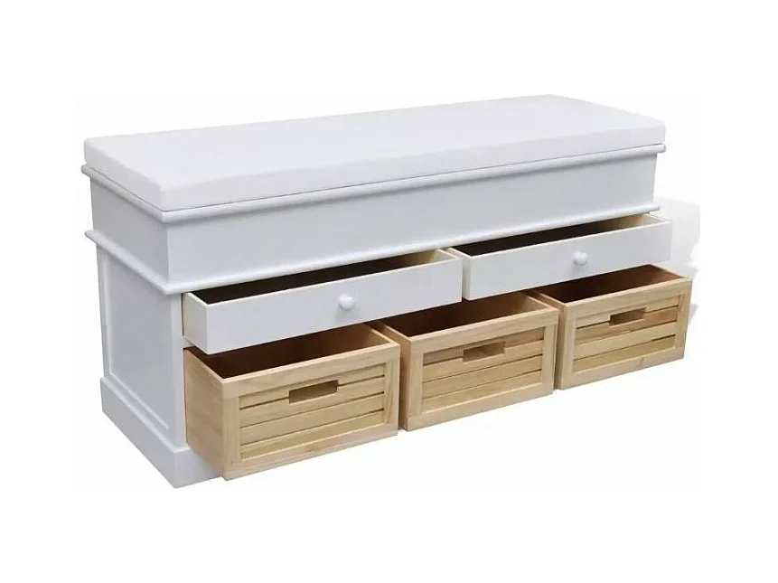 Banc de rangement 5 tiroirs bois paulownia massif Mounira