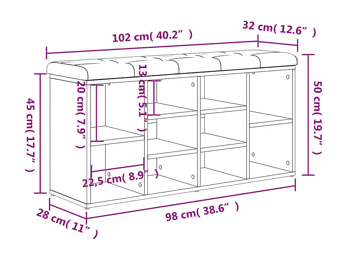 Banc de rangement à bois blanche 102 x 32 x 50 cm DEC024828