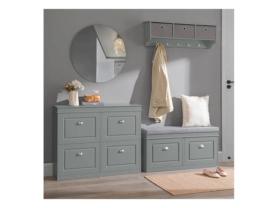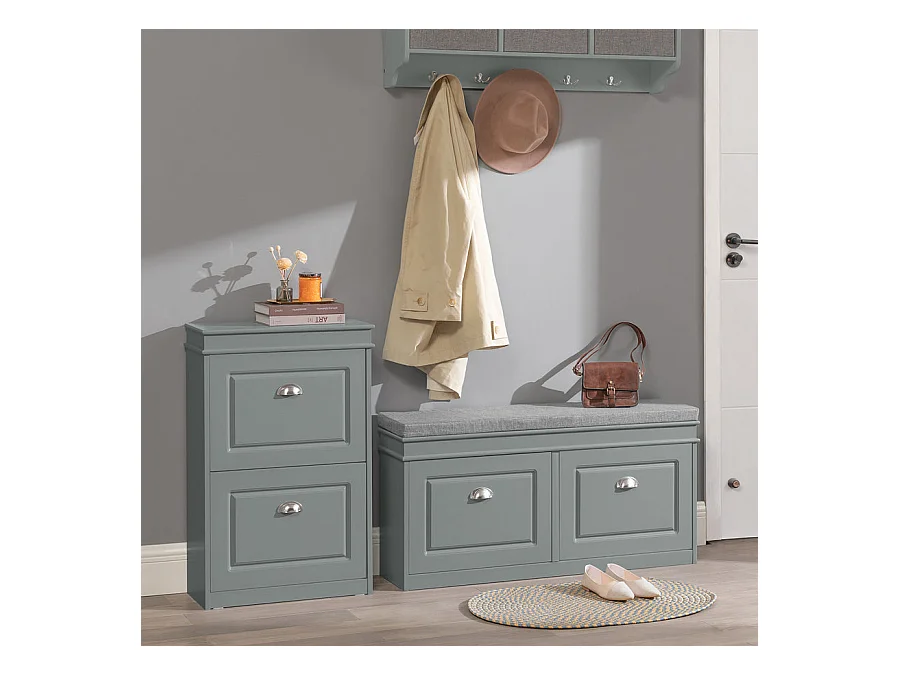 Banc à Chaussures Meuble à Chaussures avec Assise Coussin Rembourré et Abattant Gris, FSR82-L-HG