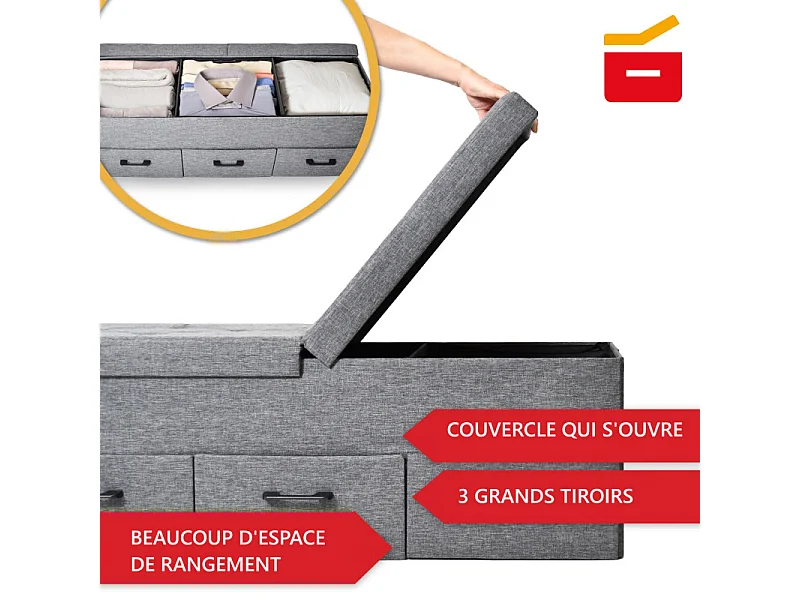 Banc de Rangement avec coffre et tiroirs 3 places 110x36x40cm
