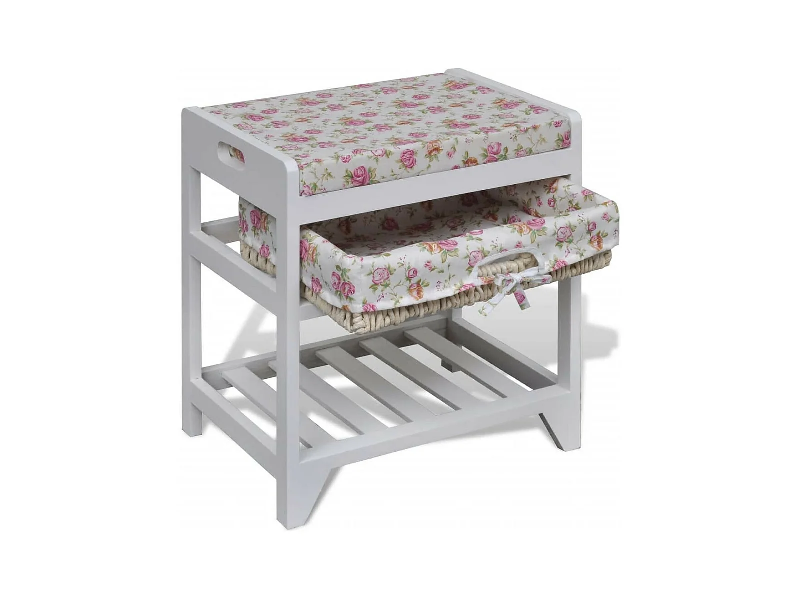 Banc de rangement avec étagère à chaussures et panier Paulownia